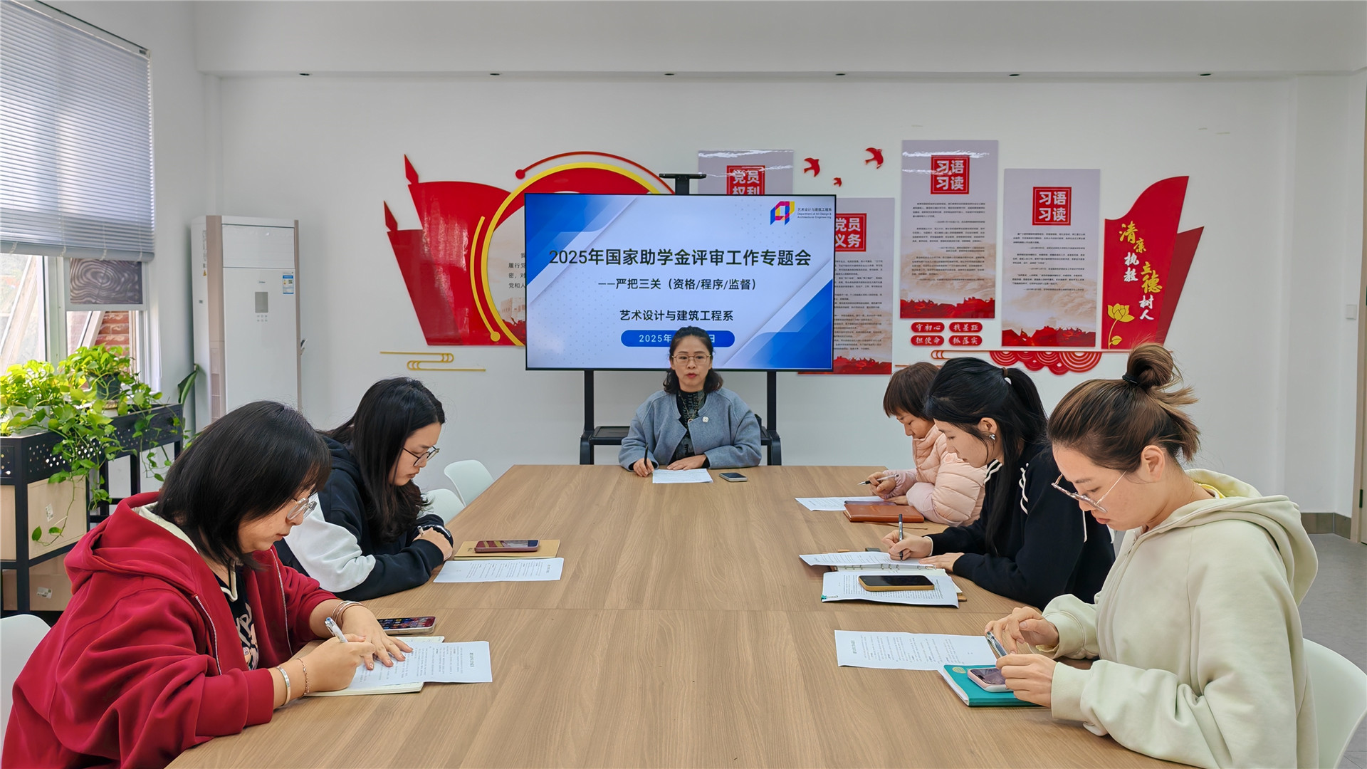 2025年11月10日艺术设计与建筑工程系助学金评审工作专题会顺利召开,会议由党支部书记杨春娟主持并作核心部署。她重点强调,助学金评选必须严格遵循“公平、公正、公开”三原则,确保过程透明、结果服众。作为材料审核的首要责任人,全体辅导员需层层把关,从资格初审到综合评定全程严守规范,杜绝任何形式的违规操作。