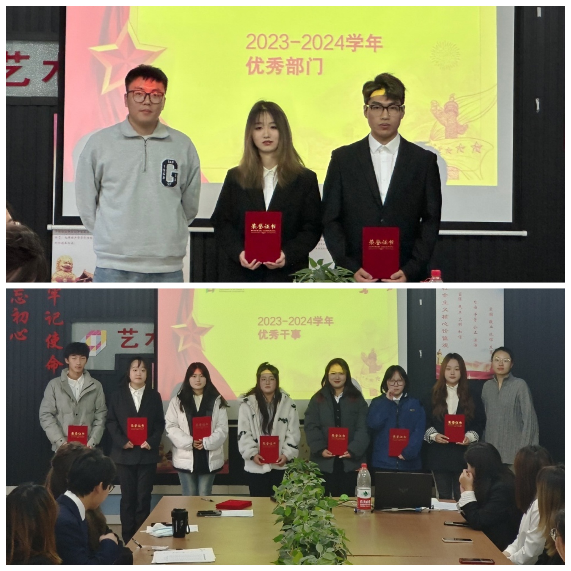 系团总支书记崔杰对本学期学生会活动开展给予了积极地肯定,强调了学生组织团队合作和内部沟通的重要性,也从下学期学生会活动创新设想层面提出了建设性的意见和期望。会议最后辅导员唐晨为7位获得优秀干事的同学颁发证书,崔杰为两个优秀部门颁发证书。