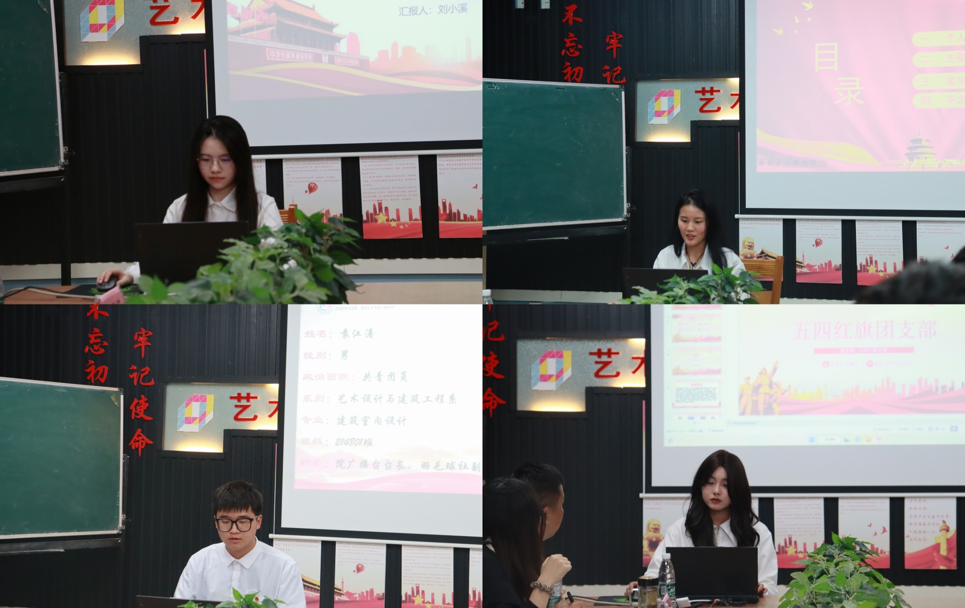为深入学习贯彻党的二十大精神,学习习近平总书记关于青年工作的重要思想,充分发挥先进典型的榜样引领示范作用,激励各级团组织和广大团员、团干部志存高远、勇于担当,让青春在全面建设社会主义现代化国家的火热实践中绽放绚丽之花,艺建系团总支于4月17日晚上18点在8204教室,开展系级“两红两优”答辩,此次答辩邀请了系党支部书记陈宏波,辅导员张书菡老师担任评委。