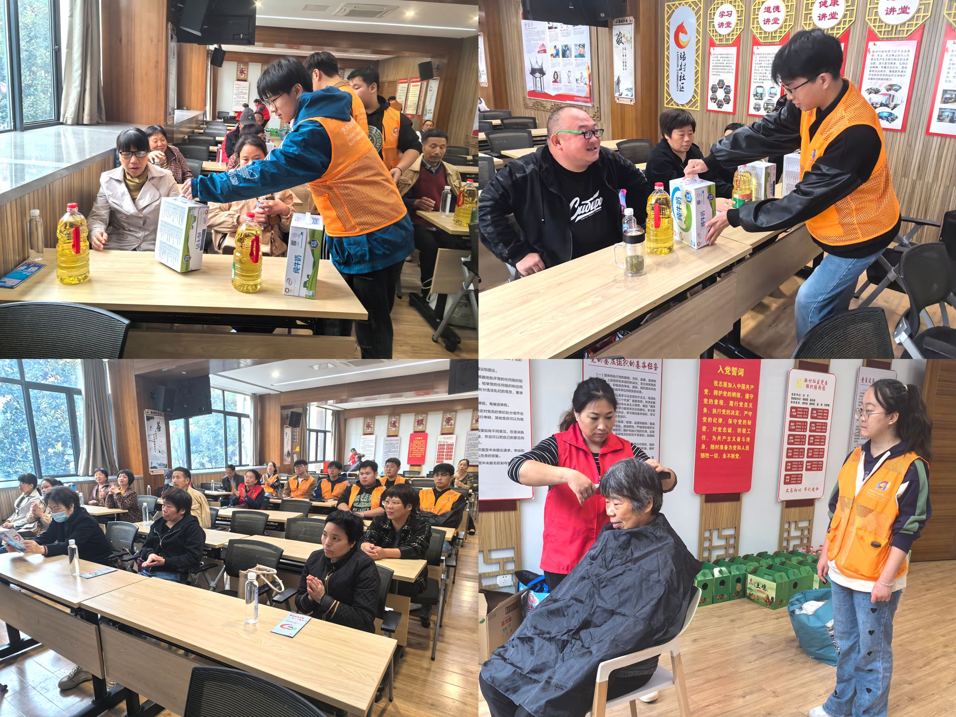 上午 9 点,学生志愿者们就开始积极参与搬运物资,布置活动现场。此次活动的帮扶关爱对象主要是情况属实的低保户、特困户家庭、困境儿童和残疾人等。他们是社会中的弱势群体,需要更多的关爱和帮助。活动现场,志愿者们以多种形式奉献着自己的爱心。有的为困难群体带来了欢乐义演,给现场带来了轻松愉悦的氛围;帮助发放过冬围巾和生活用品,为他们的生活提供了实际的支持;还有的志愿者细心地为老年人理发,让他们焕然一新,感受到贴心关怀。