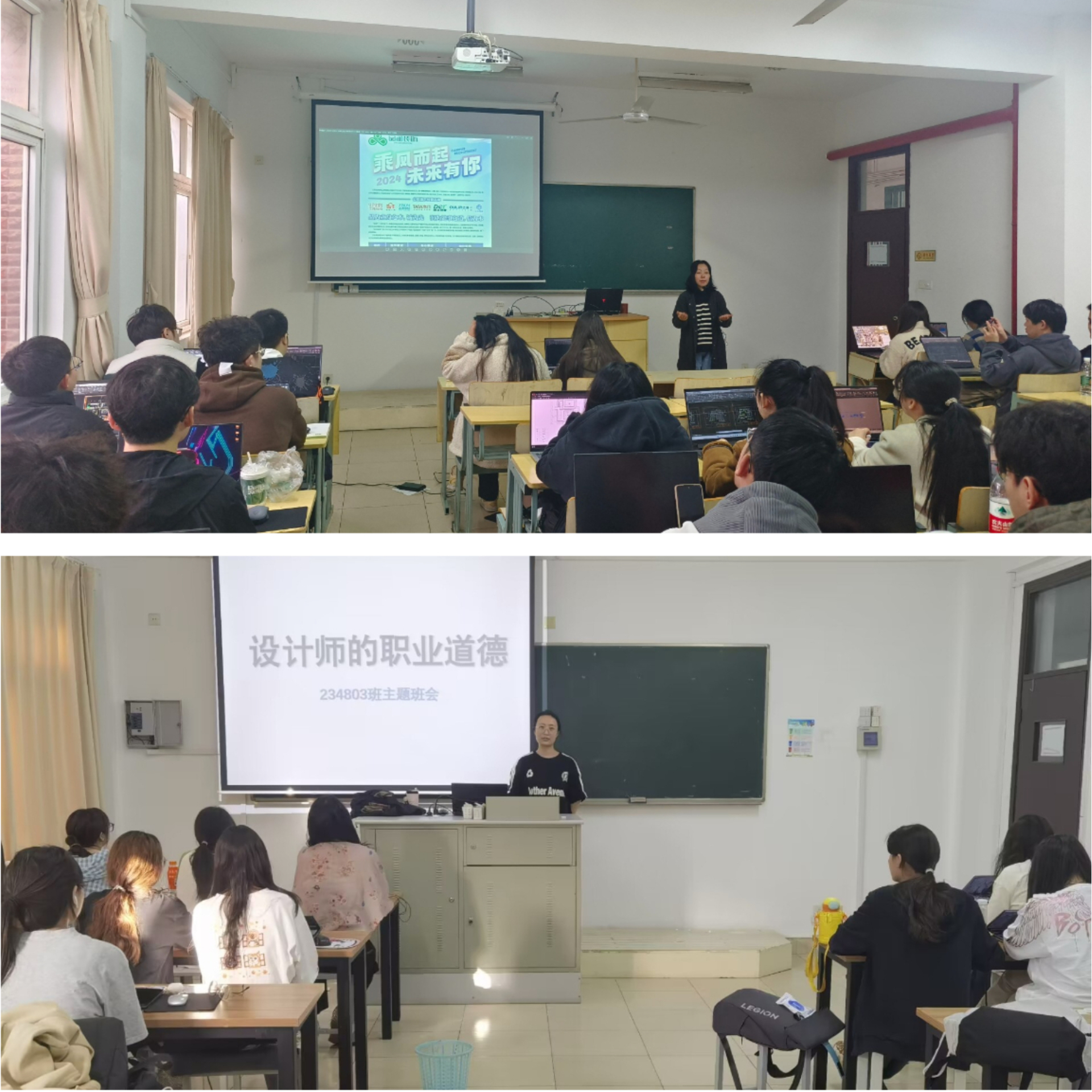 建筑室内设计专业的冯显静老师为学生们推荐了一系列高质量的实习岗位,让学生们有机会提升自身的设计理念和技术手段,进一步让学生们在实践中不断磨砺自己的技能,积累经验,为未来的职业发展打下坚实的基础。杨瀛老师在实习动员中,给学生们介绍了作为设计师应具备的职业道德,这不仅关乎个人的声誉和职业发展,更直接关系到社会的审美和文化传播。她鼓励学生应将职业道德教育放在首位,强调设计师在实习过程中应秉持诚信、责任、尊重和创新的精神。
