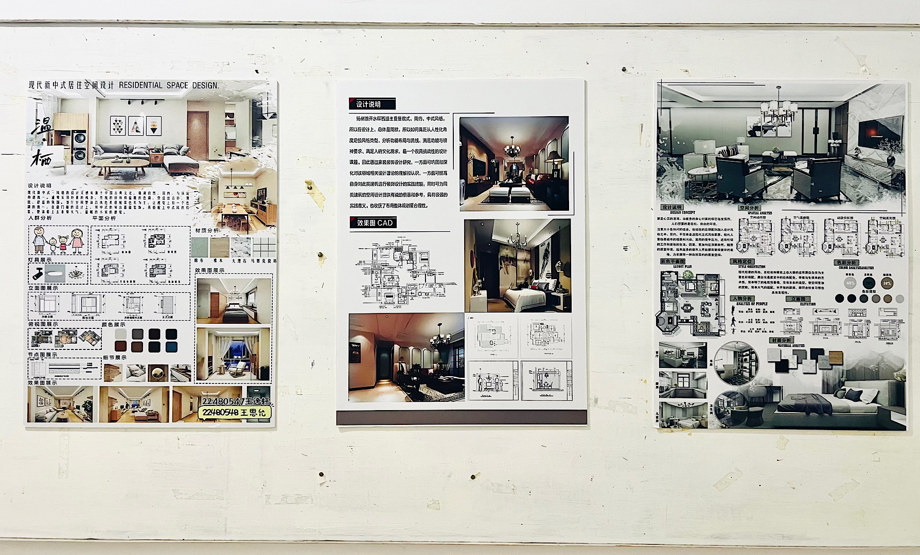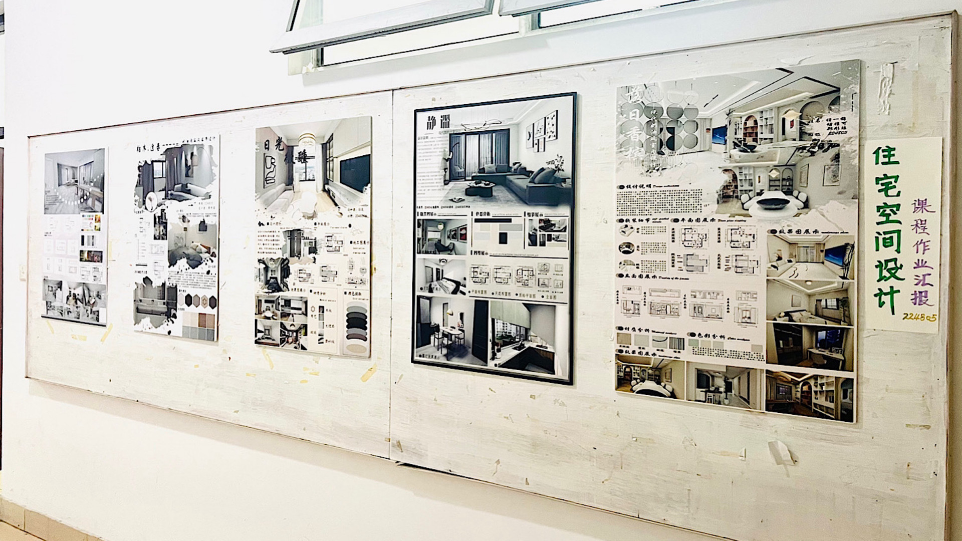 为深入学习贯彻习近平总书记关于职业教育的重要指示,认真落实全国职业教育大会精神,坚持产教融合,将“工匠精神”“精益思想”“课程思政”等元素融入课程教学,也为进一步加强同学们的学习氛围,培养学生创新思维和实践能力。2024年6月5日22级建筑室内设计专业5班《住宅空间设计》课程作业在8号楼三楼走廊展出。