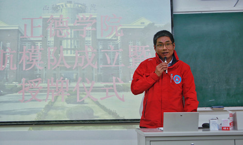 王高山首先对航模队的成立表示热烈的祝贺,随后他对航模队提出了几点希望:希望航模队能够遵守规章制度,守住安全底线;积极参加各项比赛,树立标杆为校增光;加强与其他高校航模队的交流,力争将航模队打造为国内知名、省内一流的航模队!