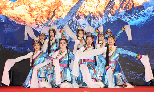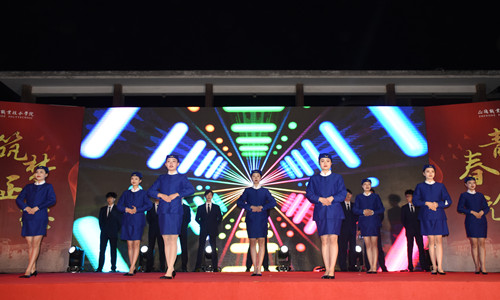 晚会第二篇章充满了青春梦想的活力和逐梦奋进的斗志。民乐古筝演奏的《将军令》激情昂扬、铿锵有力,《bang bang bang》演绎出少年追逐自由与梦想,艺术设计与建筑工程系的朗诵《请党放心 强国有我》和基础教育系带来的藏族舞蹈《唱支山歌给党听》,无不显示着青年一代在民族复兴的道路上茁壮成长。