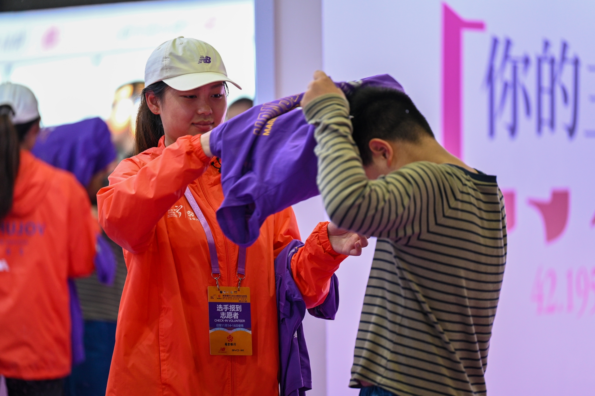 比赛当日,全程终点处的志愿者们向参赛选手提供温暖贴心的服务。“当参赛选手顺利从我们手上接过物资表达感谢的时候,真的非常感动!”在场的志愿者们激动地说。