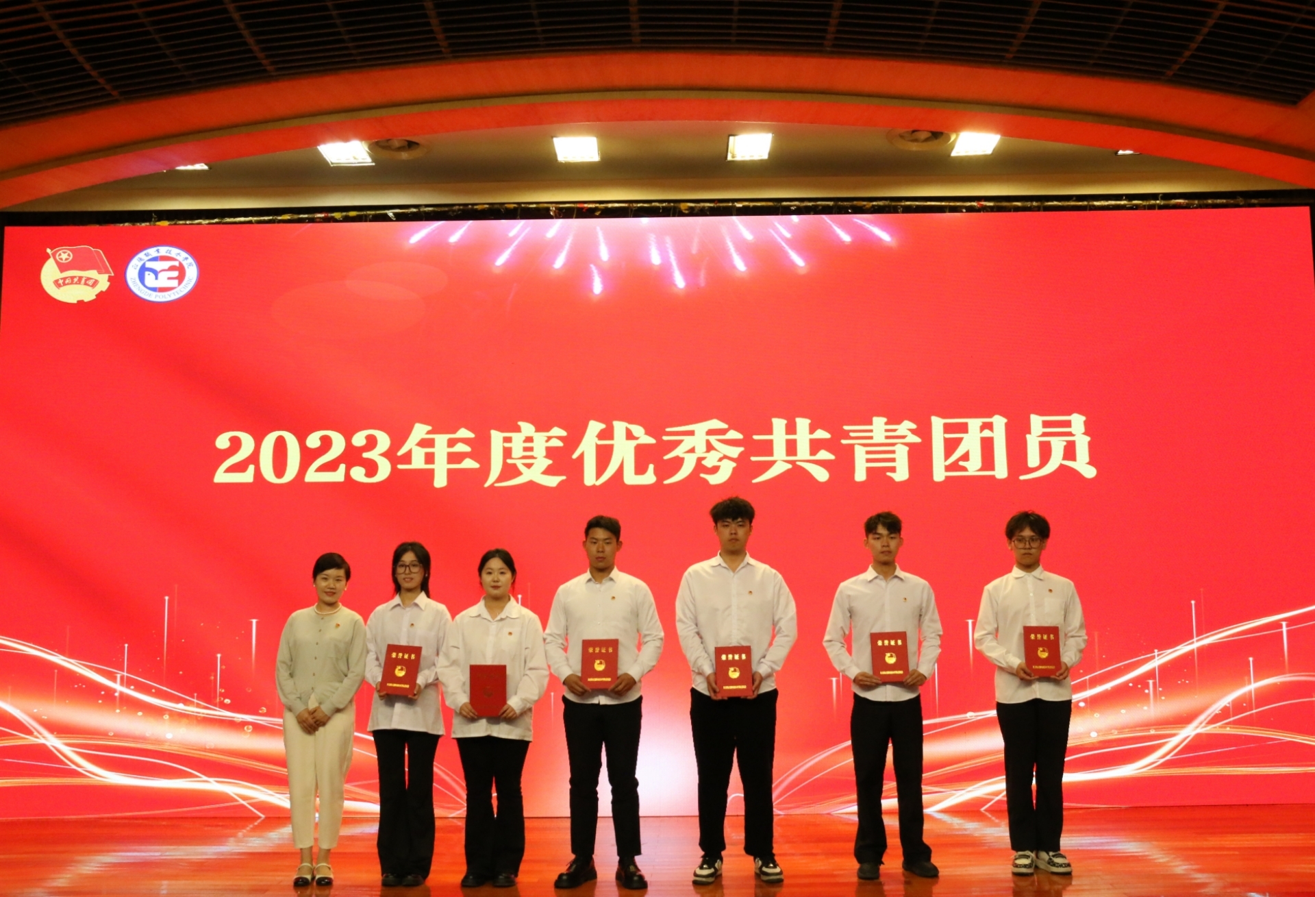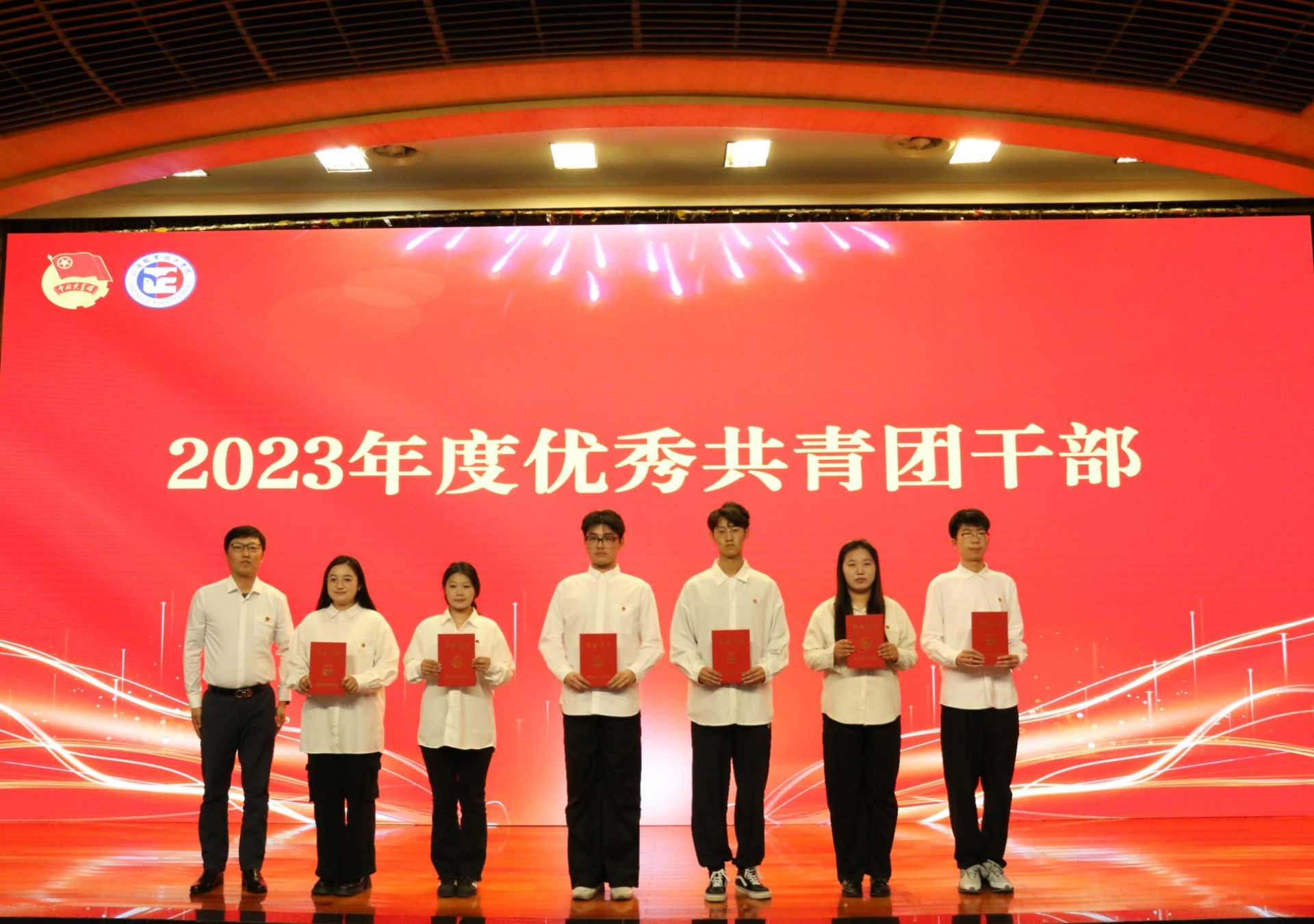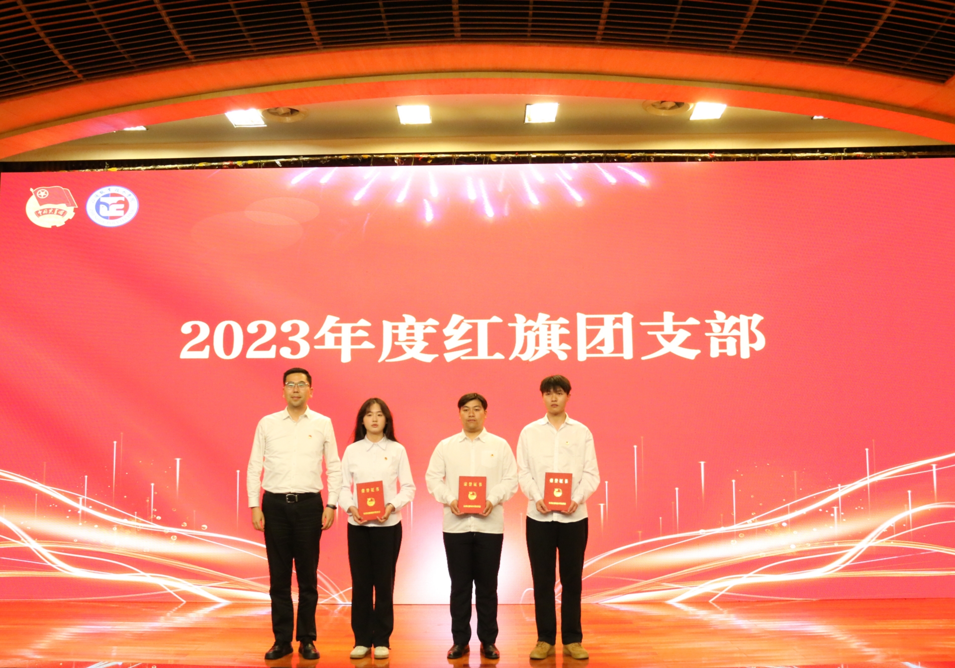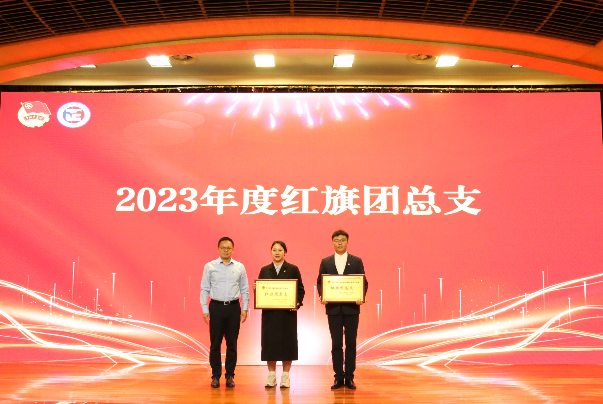 院团委书记黄晓帆宣读《关于表彰户外露出 2023年度优秀共青团员、优秀共青团干部、红旗团支部、优秀团员标兵和红旗团总支的决定》,与会领导为受到表彰的集体和个人颁奖。