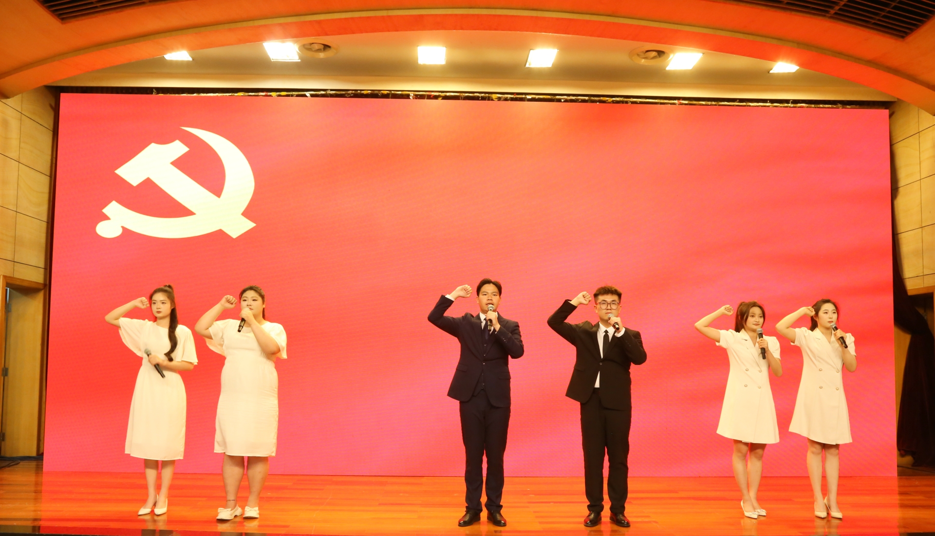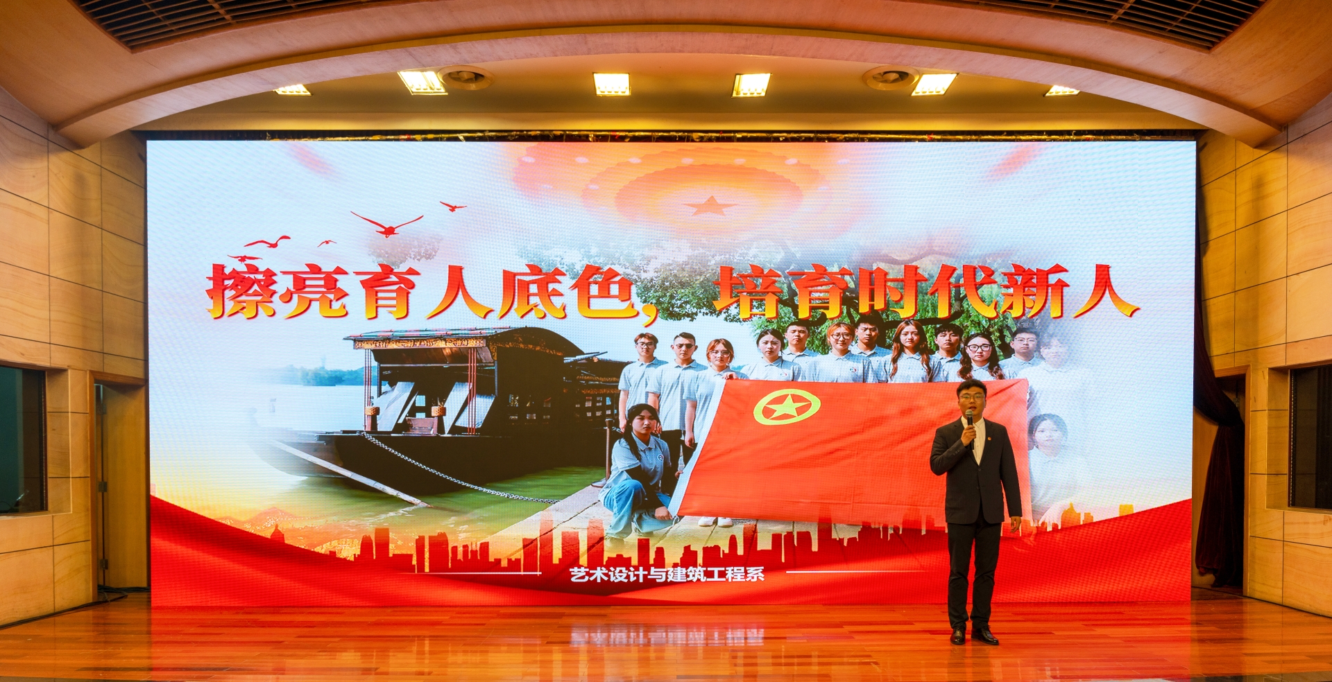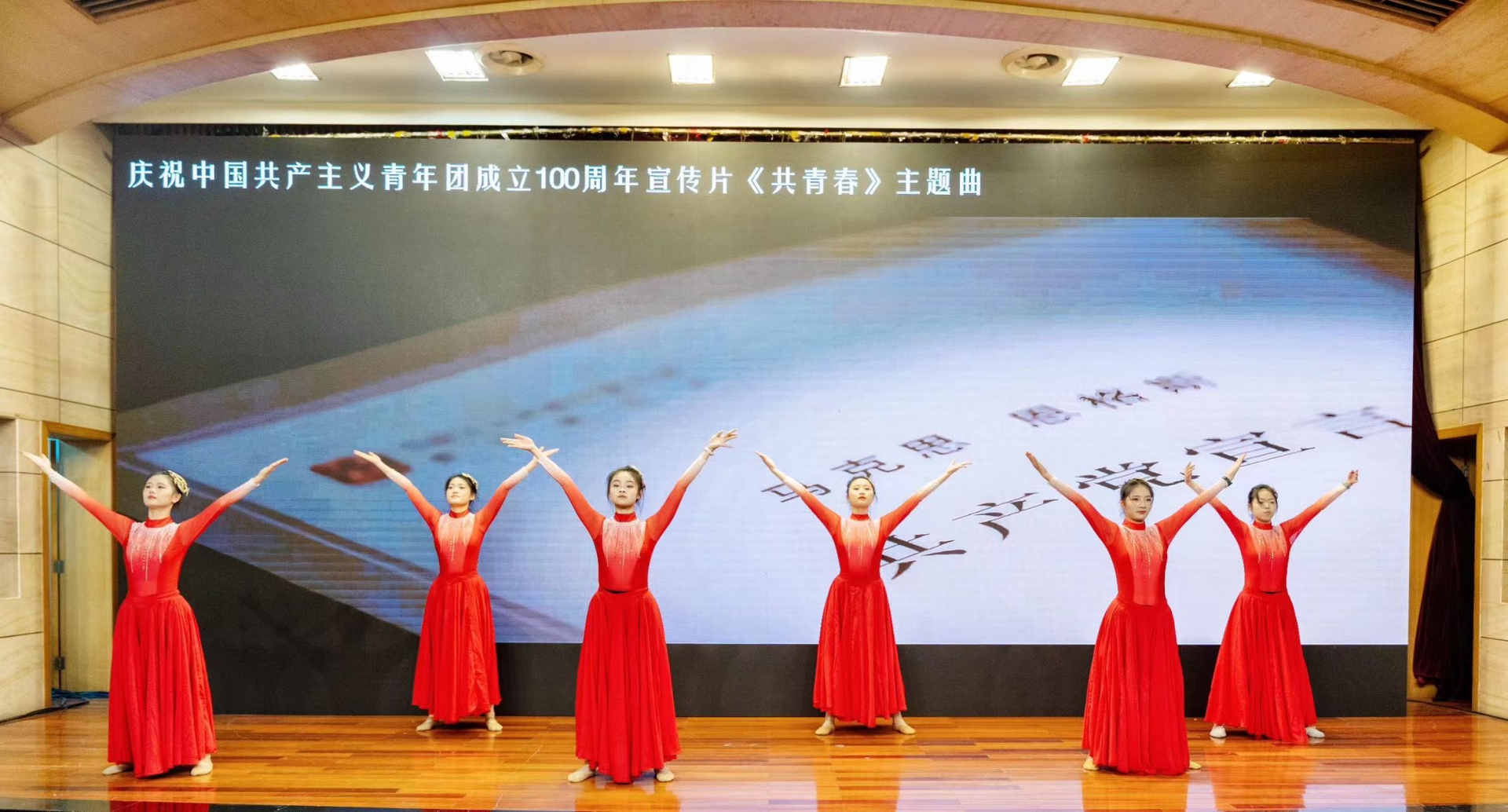 活动在嘹亮的国歌、团歌中拉开帷幕,本次“五四”表彰暨大国工匠思政公开课由“青春之信仰 · 逐梦新时代”、“青春之奋斗 · 扬帆新征程”、“青春之作为 · 扛起新使命”三个篇章组成,融合了朗诵、舞蹈、小合唱等多种艺术表演形式,带领师生沉浸式追忆峥嵘岁月,体验别开生面的学习教育,感悟信仰的力量。