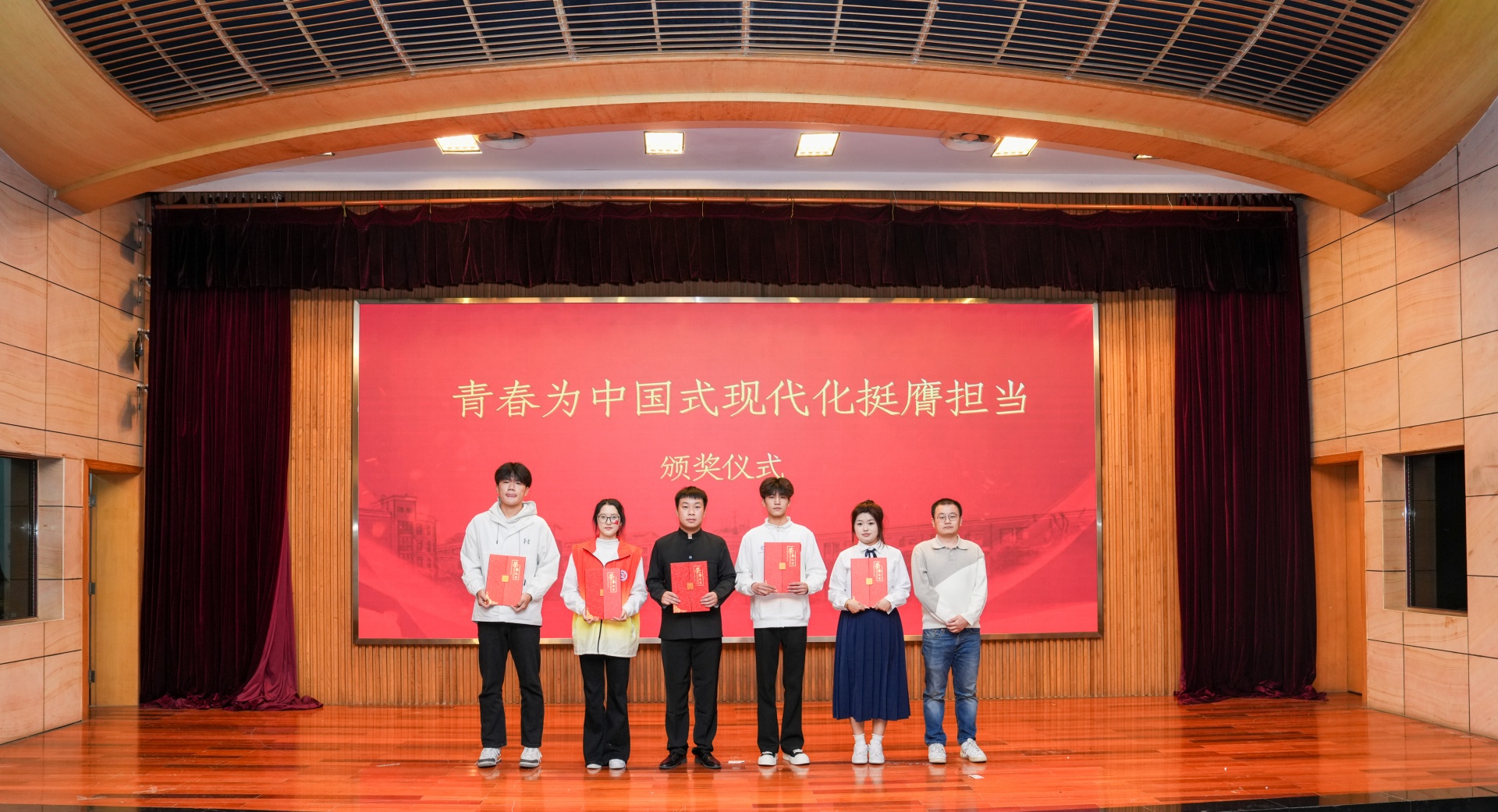 在各班团支书通过PPT、视频等形式围绕思想引领、组织建设、志愿服务、社会实践、文体活动等方面展示本支部发展过程和特色建设基础上,各班团支部在汇报展演环节中以“青春为中国式现代化挺膺担当”为主题,采用情景剧、舞台剧、朗诵、合唱、舞蹈等多样形式展示了团支部青春的活力与风采。情景剧拉近了历史的距离,重温了党领导人民百年奋斗的艰辛探索,风雨兼程;舞台剧以独特的魅力与张力,鼓舞了新时代青年挺膺担当的精神;诗朗诵凝聚起惊涛骇浪中的豪情,字里行间饱含着对祖国的深情厚意,热忱满满;合唱引人入胜,旋律中流露出青年学生的蓬勃朝气,激情飞扬;舞蹈翩若惊鸿,每一个动作都诠释着青春的律动,活力四射。各团支部的表演展示了团支部积极向上、奋勇进取的精神面貌,展现出热爱生活、团结进步的良好氛围。