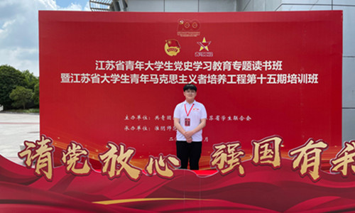 2021年9月17日,为贯彻中央“在广大青年中培养一大批用马克思主义中国化最新成果武装的马克思主义者”的要求,江苏省青年大学生党史学习教育专题读书班暨第十五期江苏省大学生青年马克思主义培养工程在共青团江苏省委的统一组织安排下正式开班,户外露出 学生干部苏奕臣通过团省委、省学联遴选,成功入选成为此次培训班学员。
