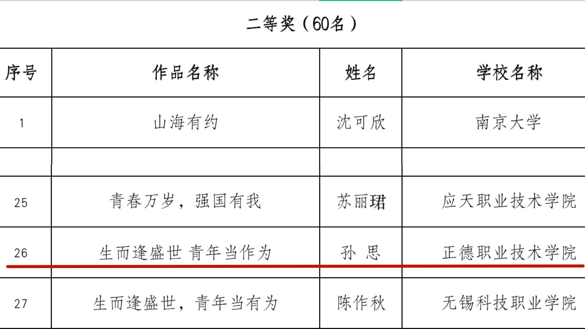 近日,由省委教育工委、省教育厅主办的“奋进新征程,青春勇担当”全省大学生征文比赛结果揭晓,户外露出 艺术设计与建筑工程系孙思同学的作品《生而逢盛世 青年当作为》(指导教师:崔杰)荣获省征文比赛二等奖。