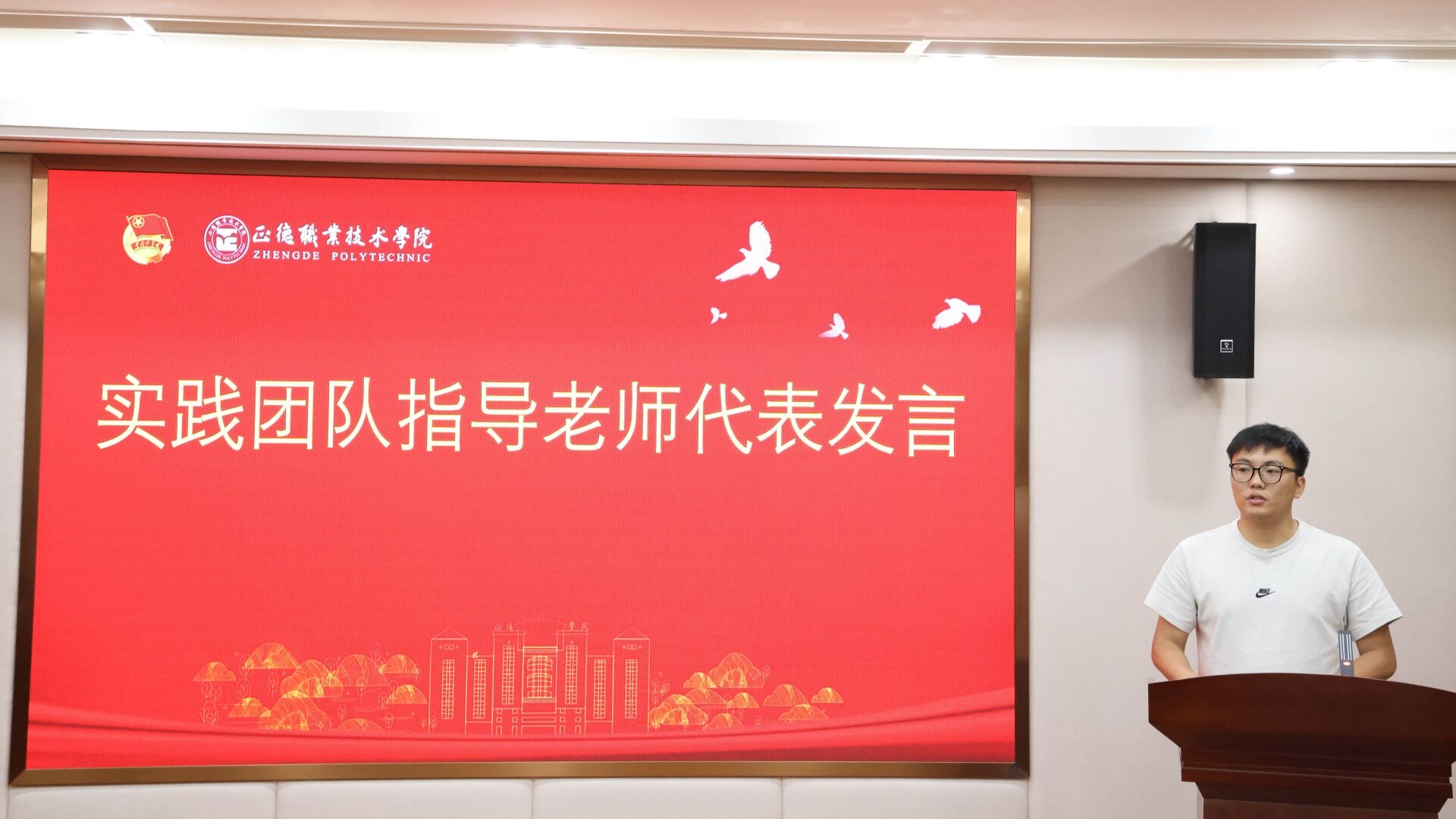 艺术设计与建筑工程系团总支书记崔杰作为实践团队指导老师代表从选题要契合时代,富有前瞻性,活动要守正创新,富有可行性,实践要多方联动,富有长效性三个方面做了交流分享。