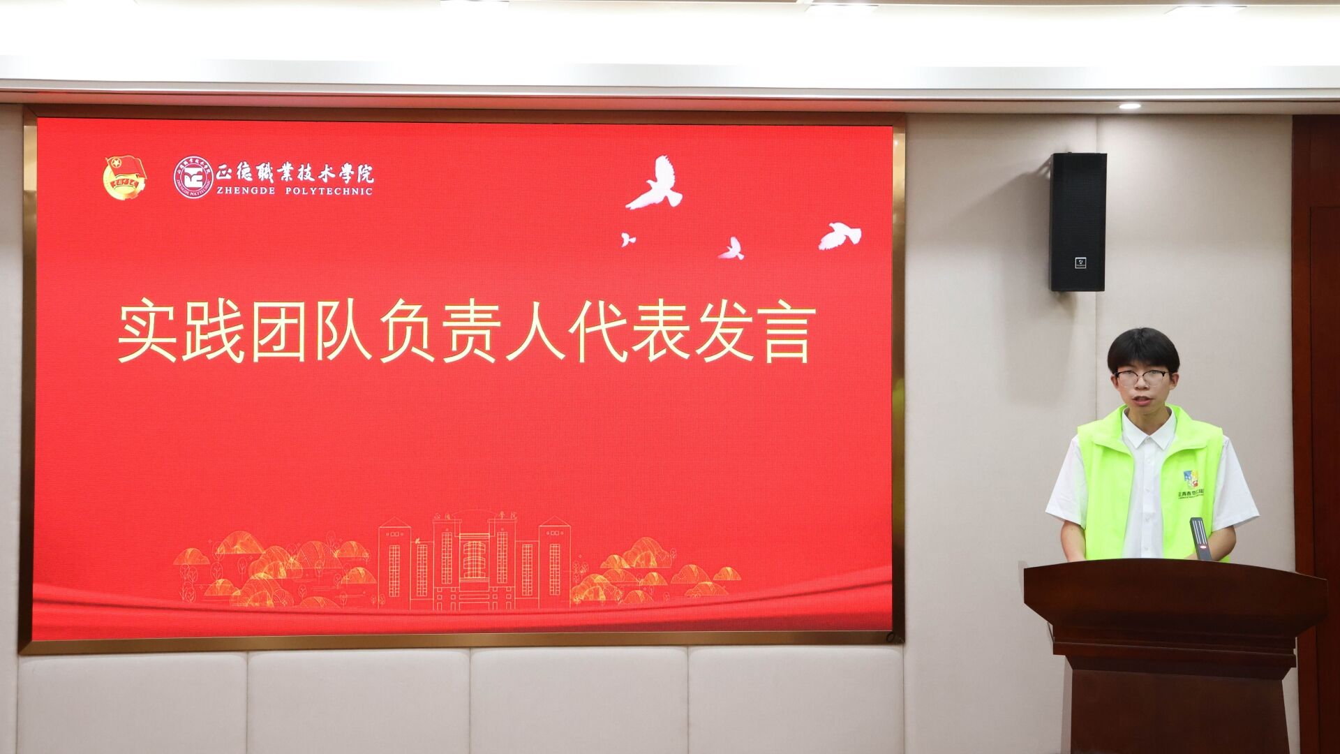 暑期社会实践团队负责人电子与信息技术系魏宇同学代表各实践团队表示要在社会实践中严格要求自己,遵守规章制度,在挥洒青春汗水的过程中展现正德学子的青春风采。