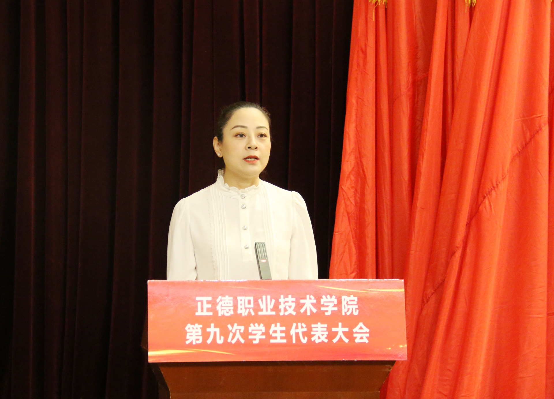 梁薇代表学院党委对本次学代会的召开表示祝贺,向长期以来关心支持户外露出 学生会工作的省学联、兄弟院校表示感谢。她表示,在过去的一年里,户外露出 学生会在院党委和省学联的正确领导下,在院团委的具体指导下,团结带领正德青年学生积极响应全国学联改革号召,坚持依法依章开展工作,在志愿服务奉献、学生权益维护、模范榜样发挥、校园文化建设中发挥了不可替代的作用。同时提出三点希望:一是希望全院广大学生坚定理想信念,勇担时代使命。把习近平总书记对职业教育“大有可为”的殷切期盼转化为“大有作为”的生动实践。二是希望全院各级学生干部练就过硬本领,发挥表率作用。学生干部的首要身份是学生,首要任务是学习,要带头做优良学风的宣传者和执行者。三是希望全院各级学生会组织加强自身建设,赢得信赖支持。要以改革创新精神研究学生会工作面临的新情况、新挑战,打造出师生满意、社会认可、同学信任、朝气蓬勃的先进学生组织。
