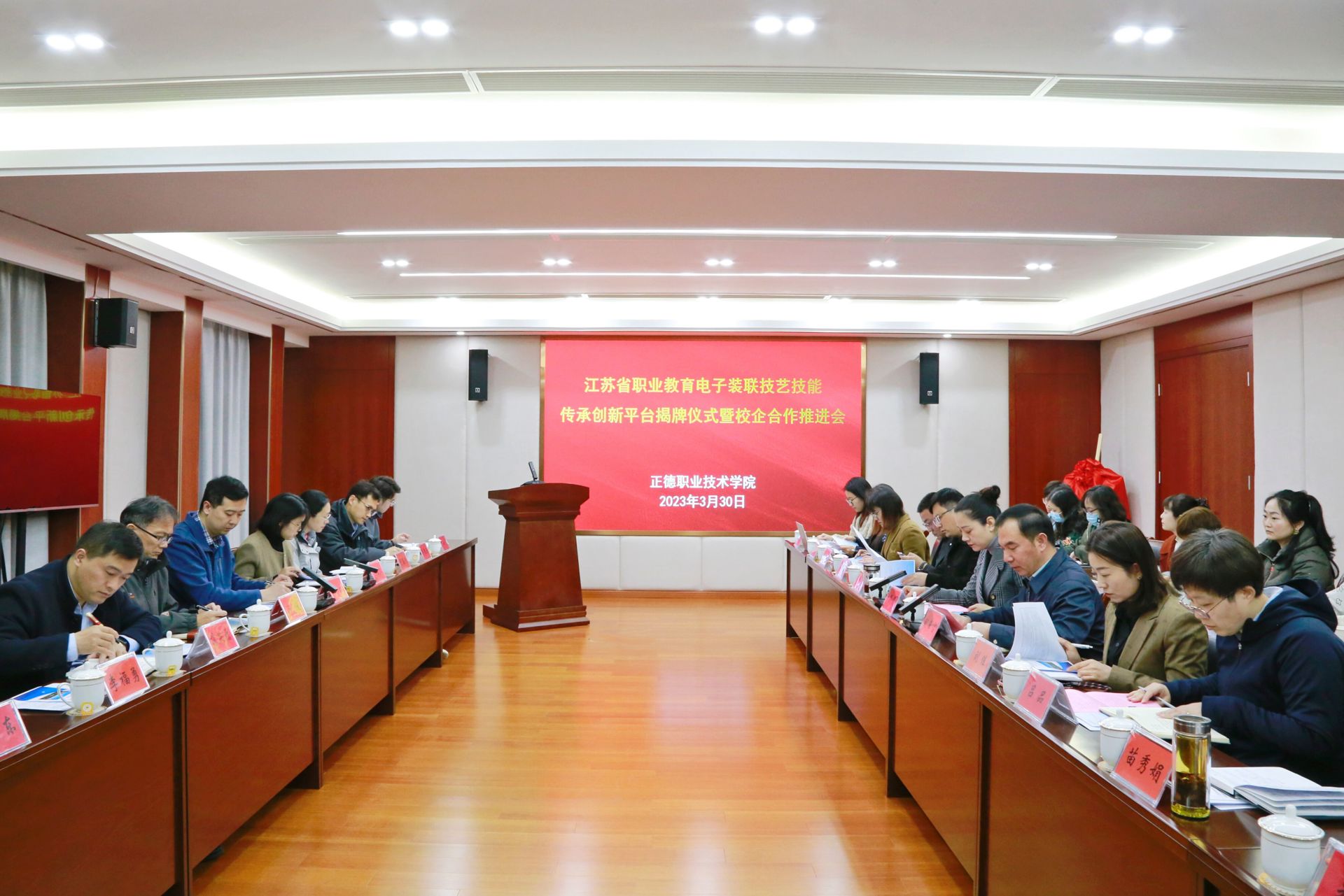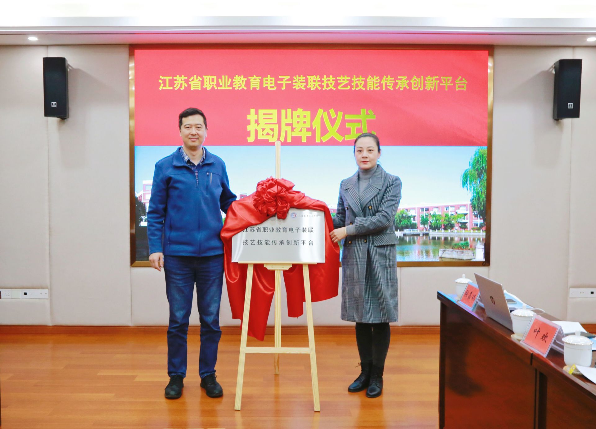 会上,梁薇和纪乐还为江苏省职业教育电子装联技艺技能传承创新平台揭牌。