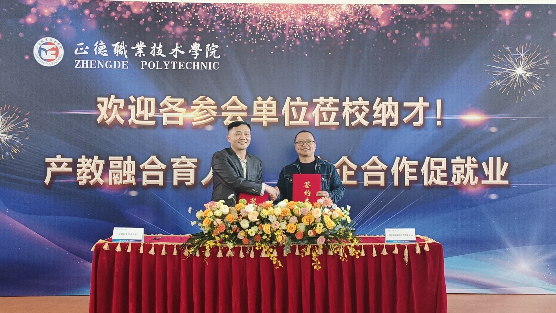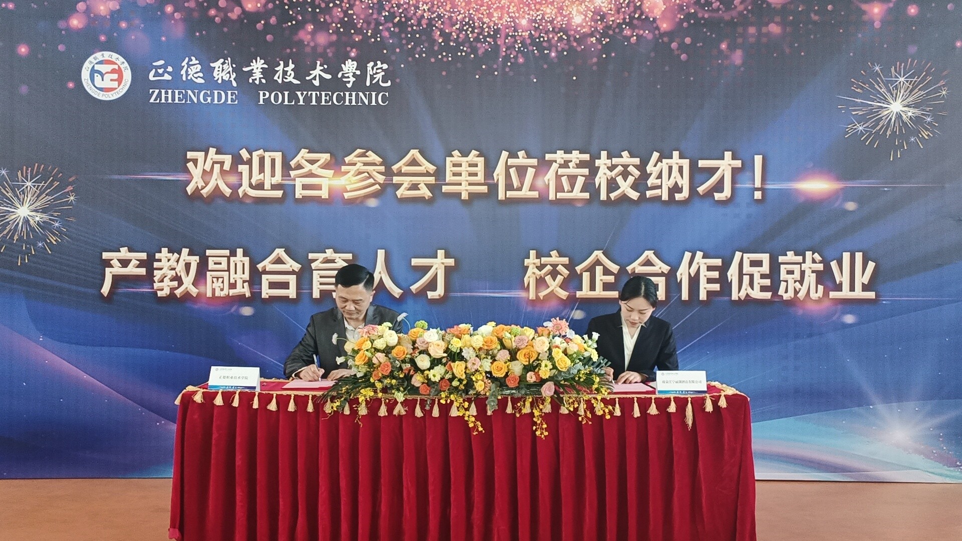 多家企业对户外露出 办学水平、育人质量和“双选会”盛况表示了高度肯定,希望能进一步与学院开展深度合作,不断拓宽双方合作的规模和领域,共创校企合作新篇章。副院长江爱华与南京江宁丽湖酒店有限公司、南京锦苑装饰工程有限公司代表现场签署了校企合作意向书。