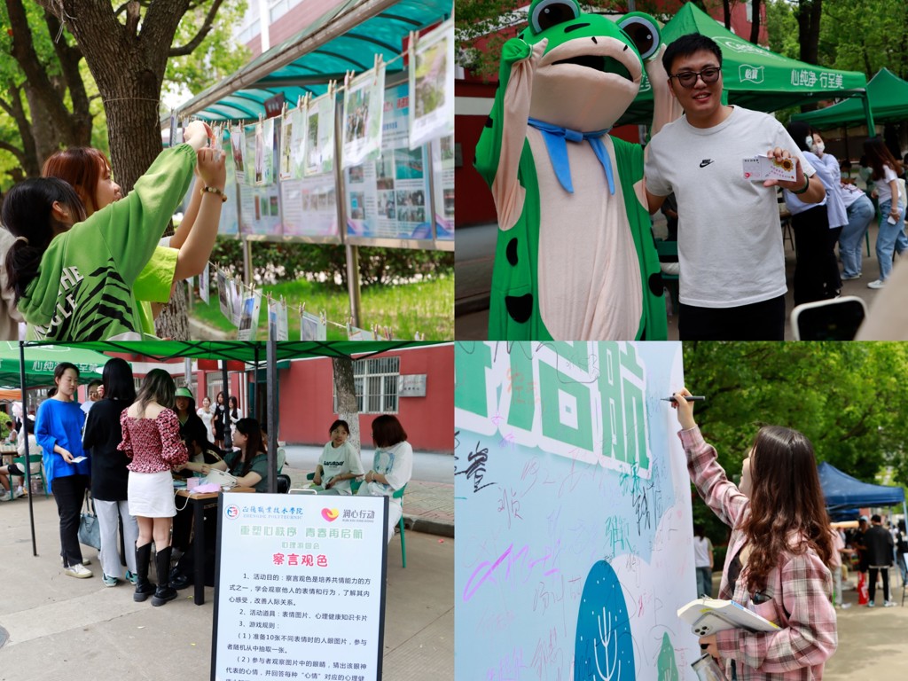 为进一步做好户外露出 大学生心理健康教育工作,引导大学生理性全面看待我国三年来抗疫伟大成就,珍惜当下来之不易的学习生活环境,积极构建健康和谐的身心秩序,以阳光心态、强健体魄,开启青春筑梦新征程,在广阔舞台和火热实践中彰显生命价值,促进学生心理健康素质与思想道德素质、科学文化素质协调发展。学生处大学生心理健康教育中心于5月25日11点在主干道两旁举办“重塑心秩序,青春再启航”润心行动心理游园会,全院千余名学生参加了本次活动。