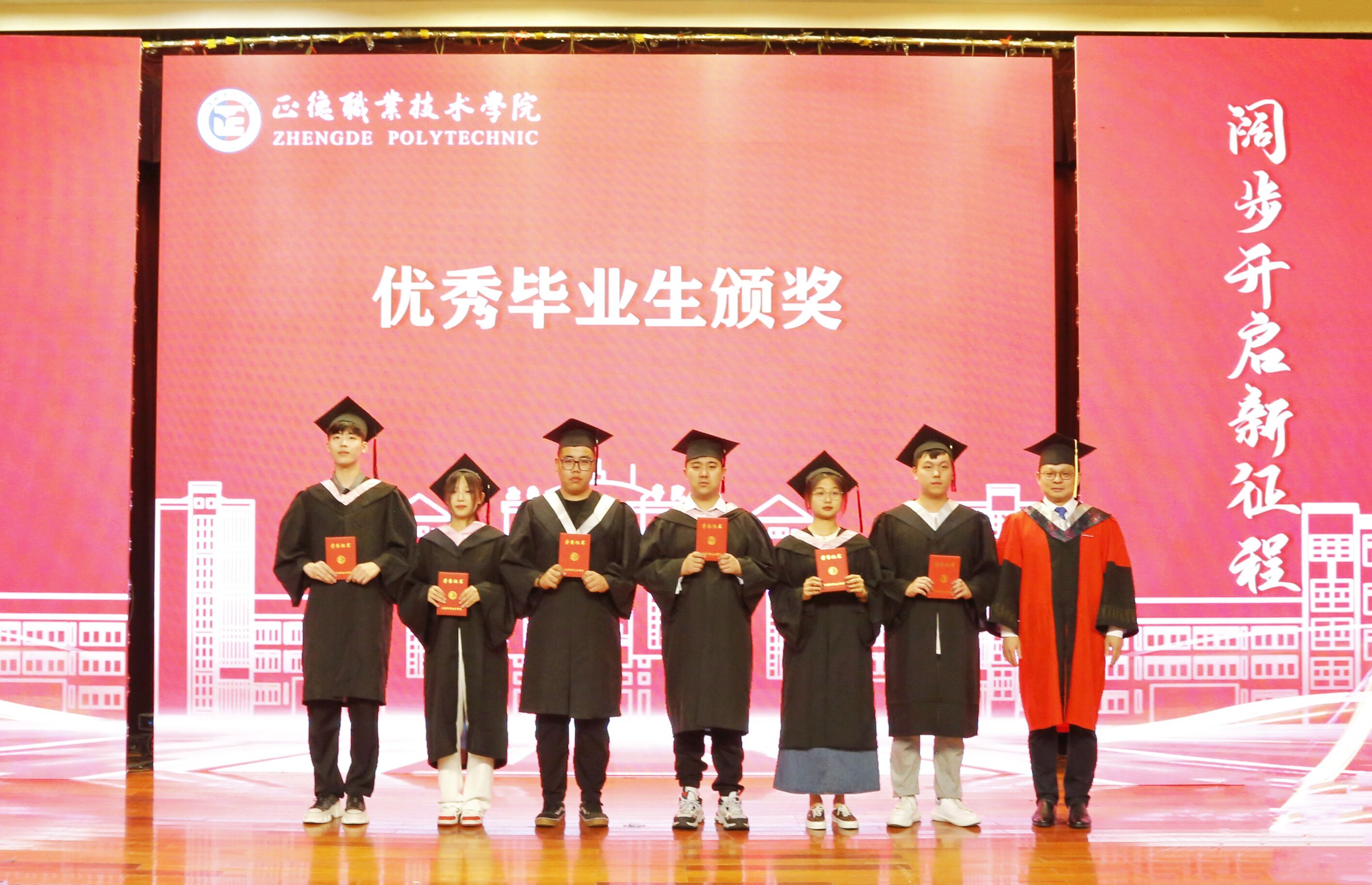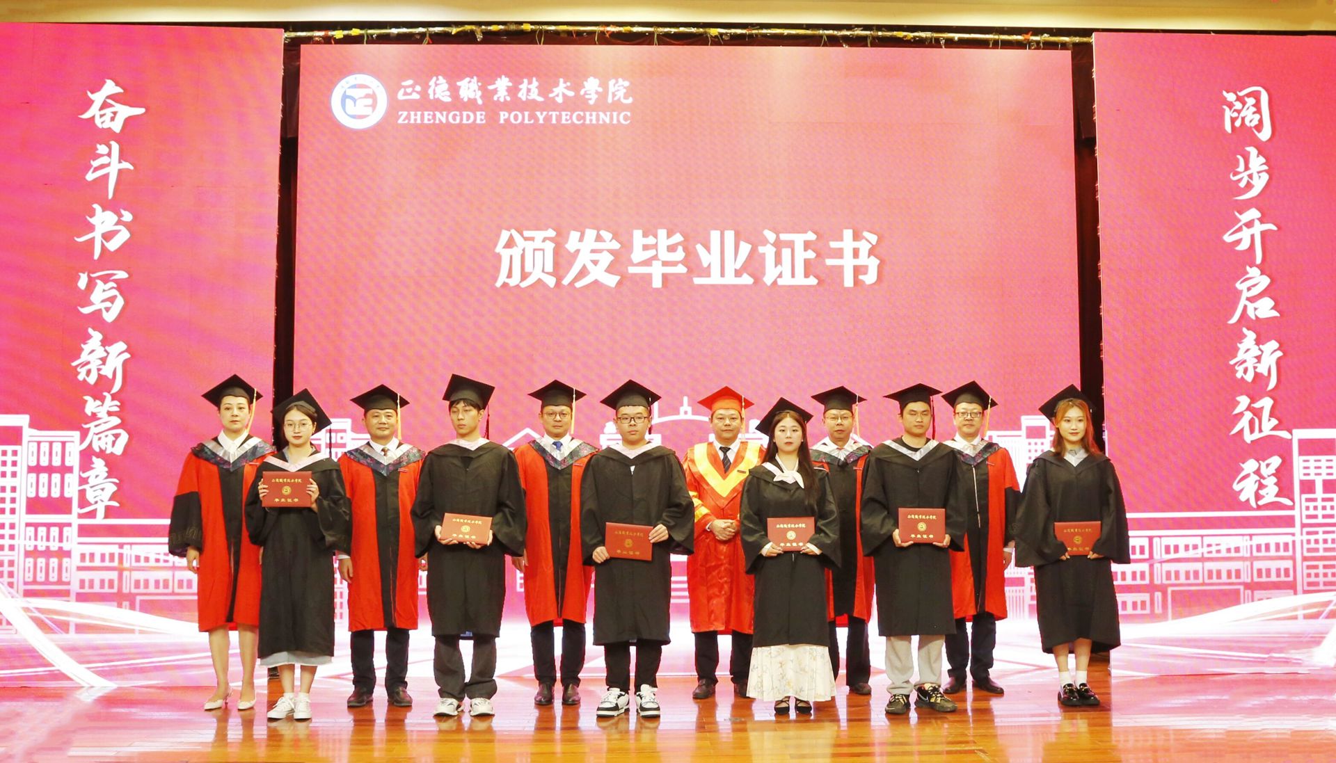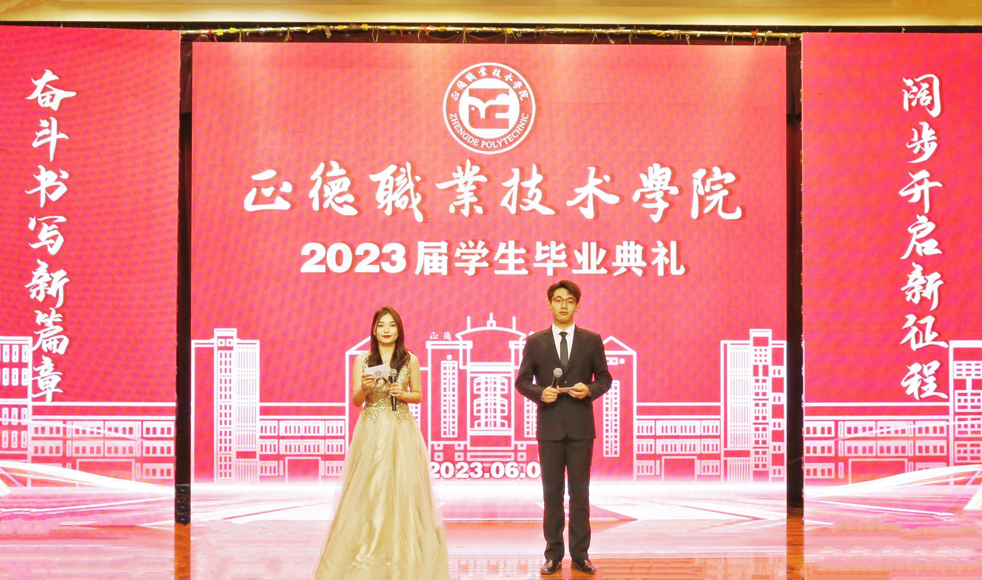 毕业典礼现场气氛热烈庄重,以“阔步开启新征程,奋斗书写新篇章”为主题,基础教育系四位同学为在场观众带来毕业歌曲串烧并伴随视频短片回顾了毕业生三年的正德岁月。