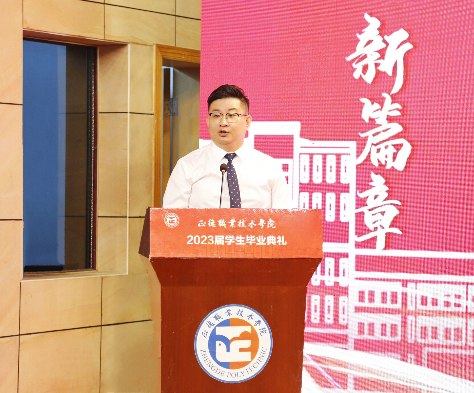 孙永荣代表学院向毕业生们送上诚挚的祝贺和美好的祝福,并作题为《青春启航 逐梦前行》的讲话。孙永荣指出,当前,世界百年未有之大变局正在加速演进,国家正处于全面建成社会主义现代化强国的新起点上,既面临前所未有的风险挑战,又拥有许多的发展机遇。在全体2023届毕业生们即将走出校园,准备迎接这个新时代未知挑战的时刻,他勉励大家,一是要“坚持梦想”。要客观地面对现实,理性地对待梦想,脚踏实地,从点滴做起,不忘初心,砥砺前行,最终将梦想变为现实。二是要“勇于创新”。要抓住机遇,勇于创新,立足岗位,拼搏进取,创先争优,在各自的领域披荆斩棘、开创一片新天地。三是要“终身学习”。要养成终身学习的习惯,保持对新领域、新事物的好奇心和求知欲,不断学习新知识、新技术,努力做到学有所成,学有所用,真正成为现代化建设所需要的能工巧匠、大国工匠。四是要“心怀感恩”。要感恩同学,感恩师长,感恩父母。以一颗感恩的心去拥抱未来,认真过好人生的每一天。