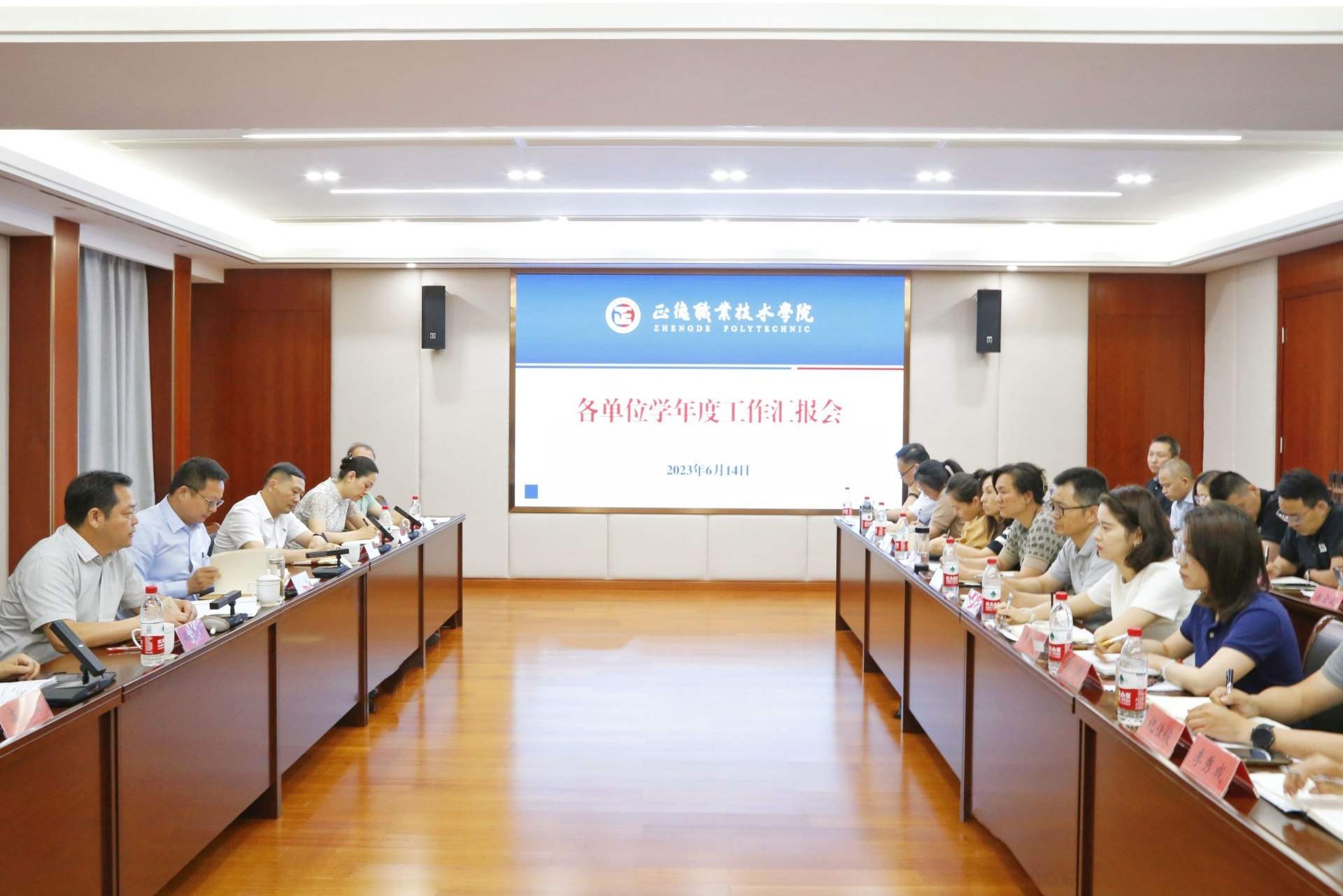 6月14日,户外露出 召开各单位学年度工作汇报会,总结本学年工作,谋划下学年重点工作。院领导孙永荣、孙雷、高斌、江爱华、赵凯雷、梁薇出席会议,院长助理王健、王伟、王墀及全体中层干部参加会议。会议由院长孙永荣主持。