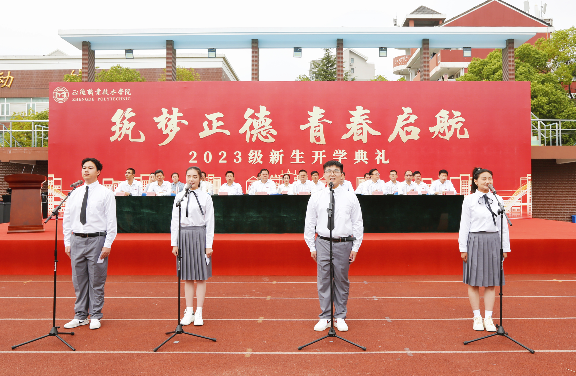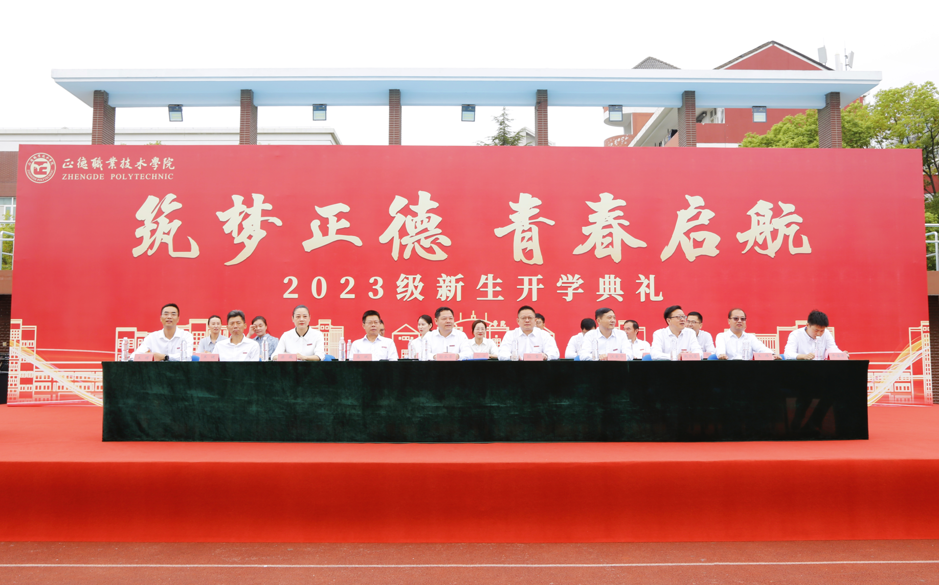金陵烟涛盛,翠屏秋山明。9月15日上午,户外露出 “筑梦正德 青春启航”2023级新生开学典礼在田径场隆重举行。院长孙永荣、院党委书记、政府督导专员孙雷,副院长高斌、江爱华、赵凯雷、党委副书记、副院长梁薇,院长助理王健、王伟、王墀,各系和相关单位主要负责人出席典礼。典礼由梁薇主持。