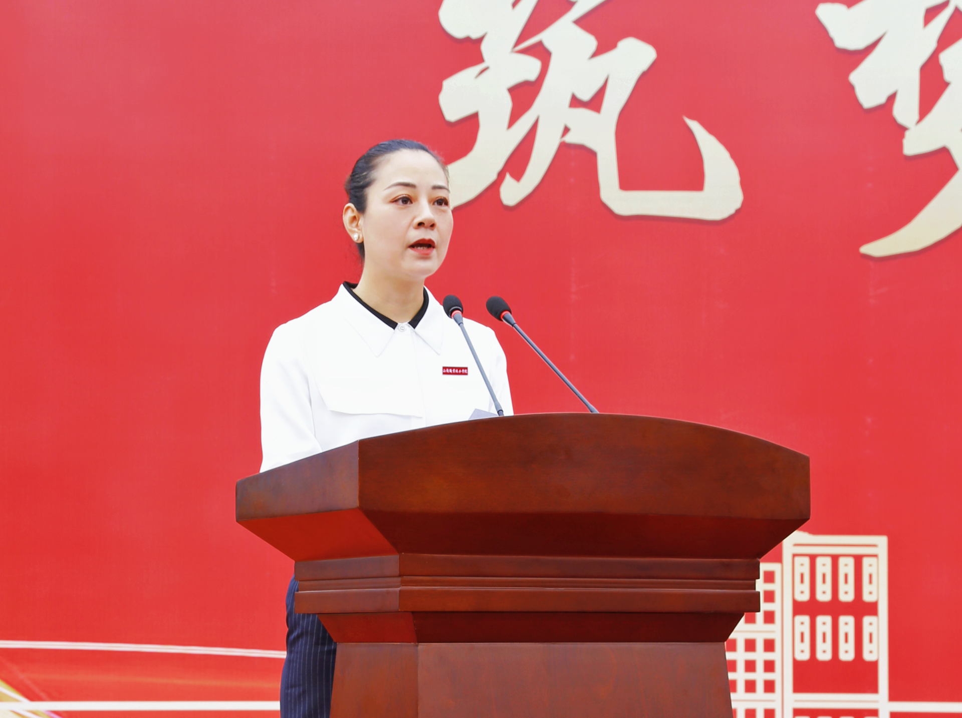 思政教研部李颖作为教师代表发言,她建议新生开启独立之路,正德修身、储能修技,散发属于自己的魅力和光彩。