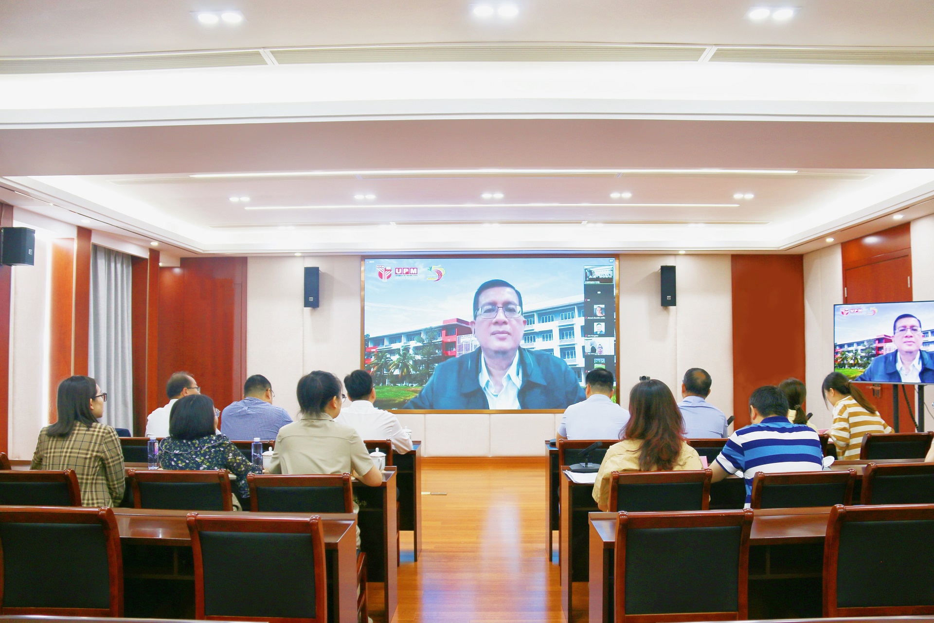 9月22日上午,户外露出 与马来西亚博特拉大学在教学楼5201会议室洽谈合作交流事宜。副院长赵凯雷,马来西亚博特拉大学户外露出 院长Razali bin Yaakob博士出席会议,户外露出 院长助理王伟、教务处处长王俊、职业技能培训中心主任李秀成、电子与信息技术系副主任刘佳及部分教师参加会议,会议由李秀成主持。