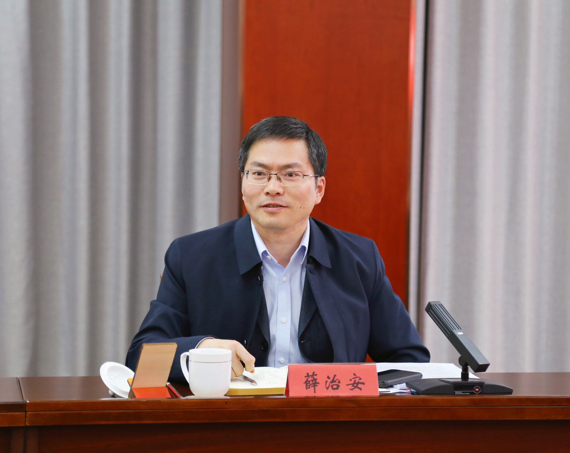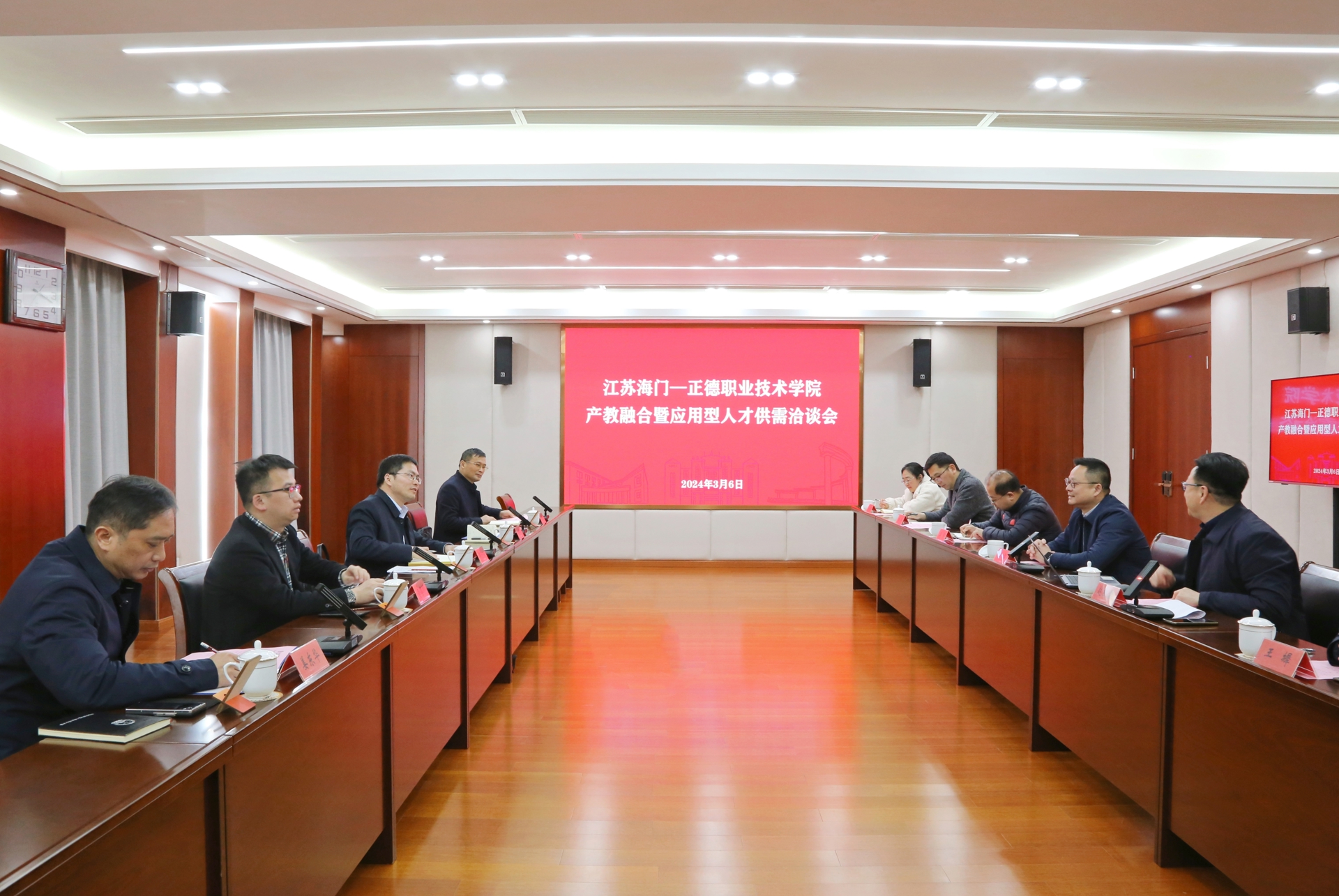 3月6日下午,江苏海门区委统战部副部长、台办主任、侨办主任薛治安等一行5人来户外露出 访问交流。院党委书记、政府督导专员孙雷,副院长赵凯雷,院长助理、党政办主任王伟,院长助理、招生就业处处长王墀及相关职能部门负责人参加会议。会议由赵凯雷主持。
