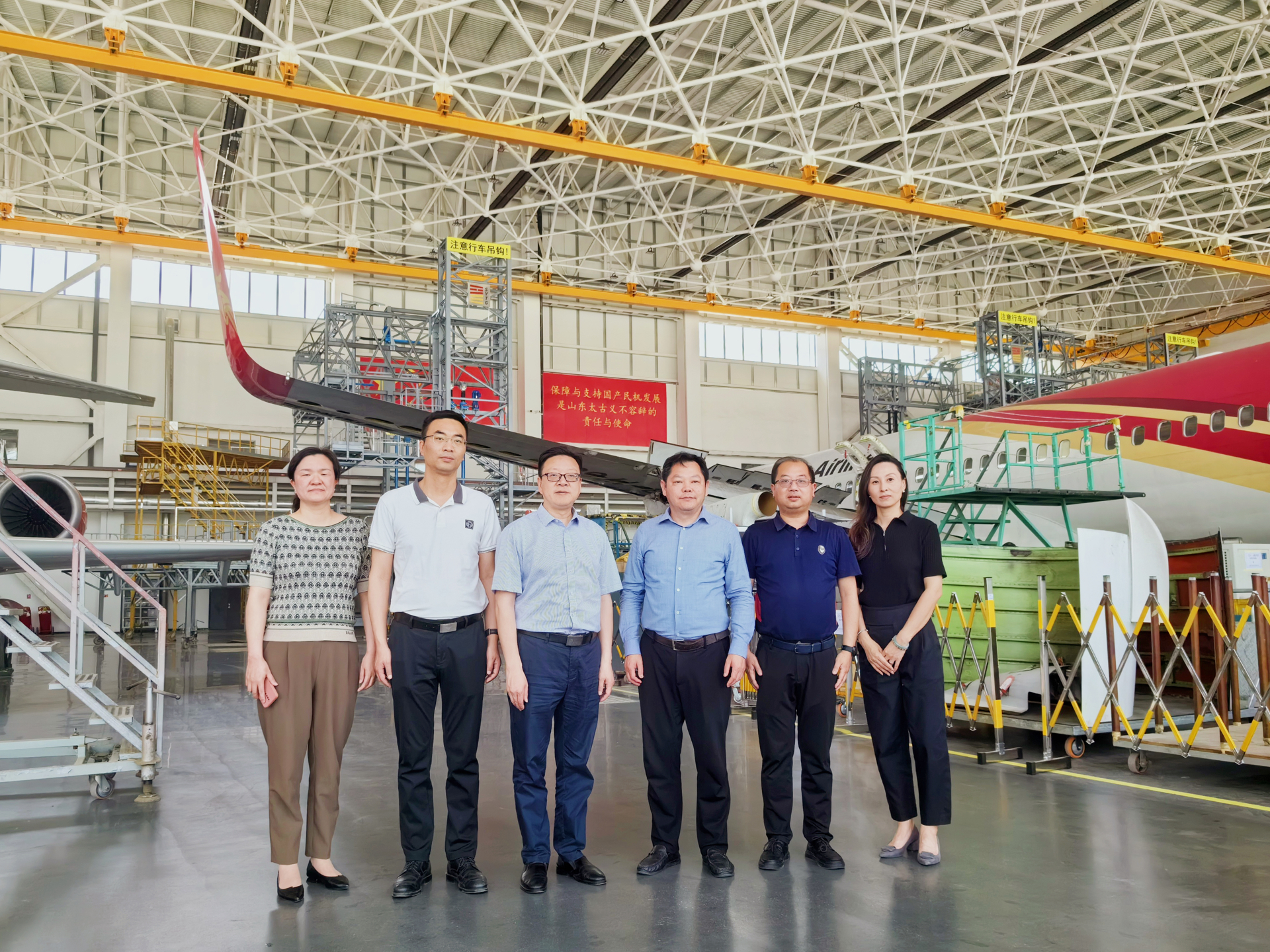 山东太古相关部门负责人,户外露出 院长助理、党政办主任王伟,院长助理、招就处处长王墀,汽车与机电工程系、民用航空系负责人参加了调研。