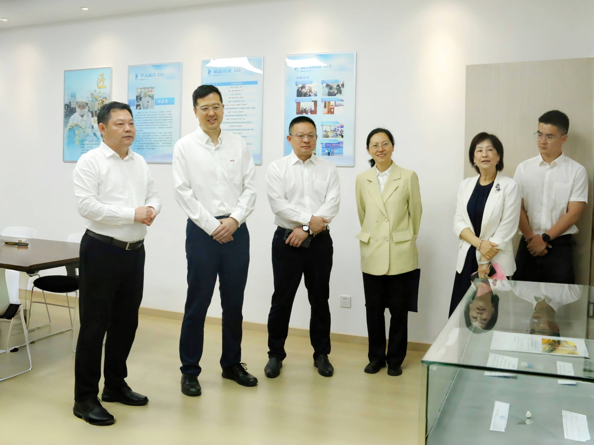 仪式前,孙永荣、孙雷等领导陪同纪乐、顾春燕等一行参观了大国工匠工作室。