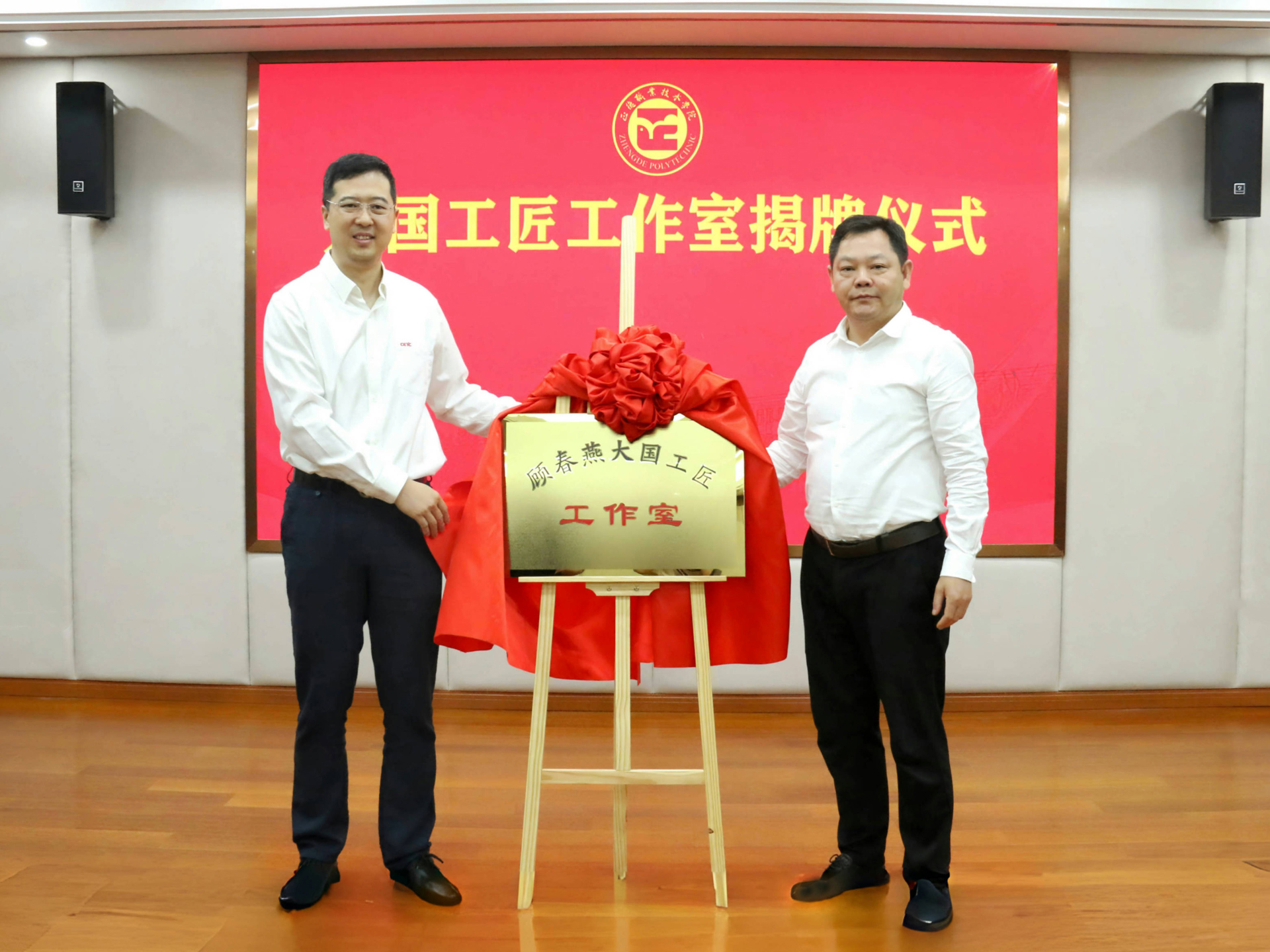 仪式上,孙永荣与纪乐共同为“顾春燕大国工匠工作室”揭牌。