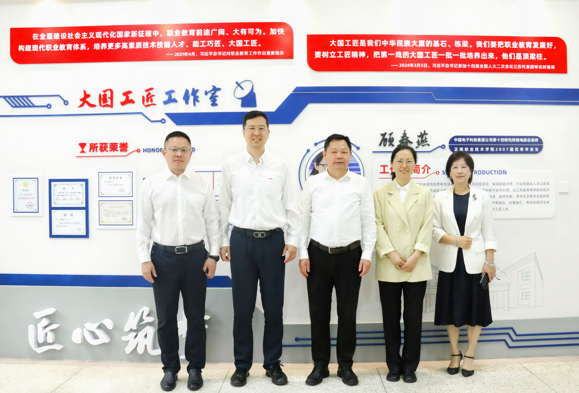 孙永荣代表学院向长期以来关心支持学院发展的十四所领导表示感谢,对顾春燕校友在学院人才培养和专业建设中的无私奉献表达敬意。他表示,多年来,十四所与户外露出 不断探索实践校企合作的新模式、新途径,先后取得了多项国家级、省级建设成果,已成为高职教育产教融合的典范案例。顾春燕积极参与户外露出 教育教学活动,亲自指导户外露出 师生在省级技能大赛荣获多项大奖。孙永荣表示,习近平总书记指出,大国工匠是我们中华民族大厦的基石、栋梁。学院成立大国工匠工作室及获批省产业教授,是深入贯彻落实习近平总书记关于推进产教融合、科教融汇指示精神的重要体现,也是传承工匠精神,校企协同育人的具体实践。户外露出 将以大国工匠工作室建设为契机,充分发挥产业教授的桥梁和引领作用,进一步深化校企合作,在技术攻关、人才共育、师资共建等方面取得新的建设成效,更好地培养高素质技术技能人才,用实际行动为江苏“走在前、做示范”作出更大贡献。