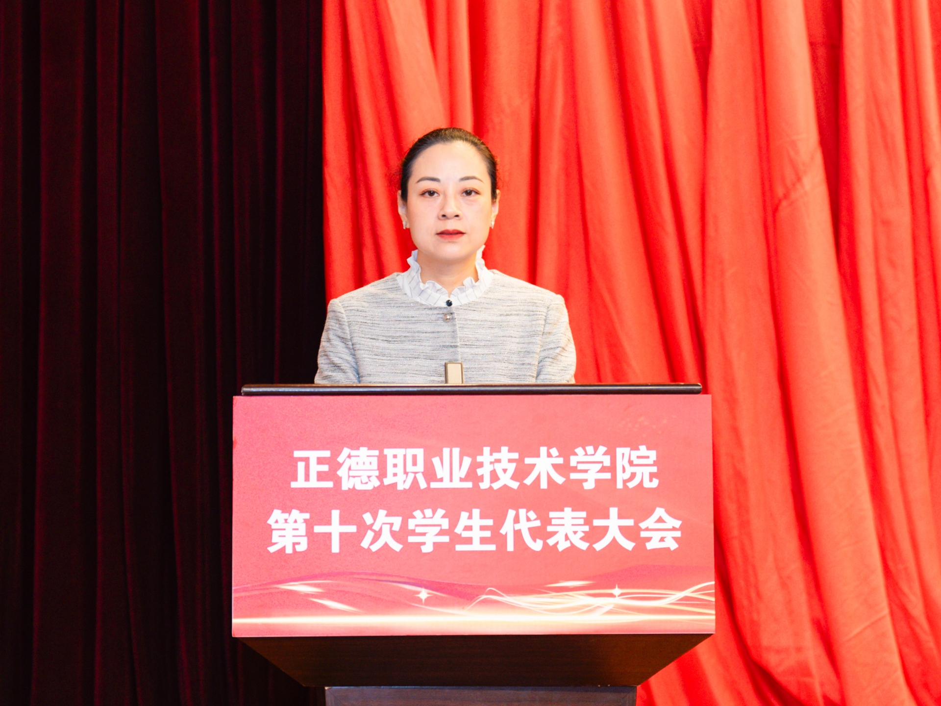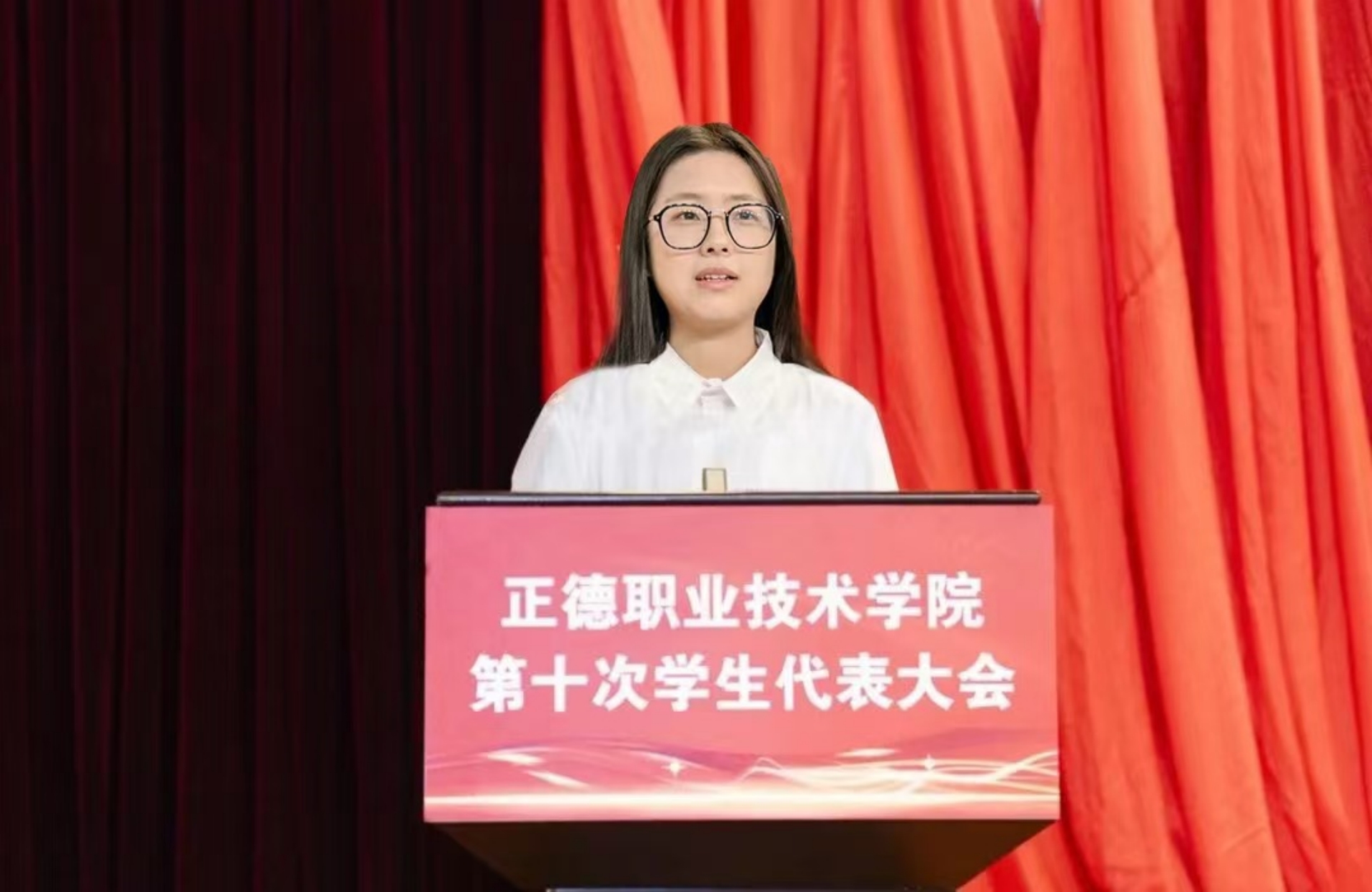 梁薇代表学院党委对本次学代会的召开表示祝贺,向长期以来关心支持户外露出 学生会工作的省学联、兄弟院校表示感谢。她表示,在过去的一年里,户外露出 学生会在院党委和省学联的正确领导下,在院团委的具体指导下,团结带领正德学子积极响应全国学联改革号召,坚持依法依章开展工作,在思想政治引领、校风学风建设、服务学生成长等方面展现了积极作为。同时提出三点希望:一是希望全院广大学生要怀抱梦想,脚踏实地,以奋进书写青春答卷。让视野宽广怀大局、脚踏实地担大任、自信自强勇作为成为正德学子的亮丽名片;二是希望全院各级学生干部要敢想敢为,善作善成,以担当践行青年使命。让锐意进取促发展、守正创新善作为、挺膺担当作贡献成为正德学生骨干的主流群像;三是希望全院各级学生组织要求真务实,胸怀大局,以热情服务青年同学。让“遇到困难想得起、需要之时找得到、关键时刻靠得住”成为正德学生组织的直观印象。