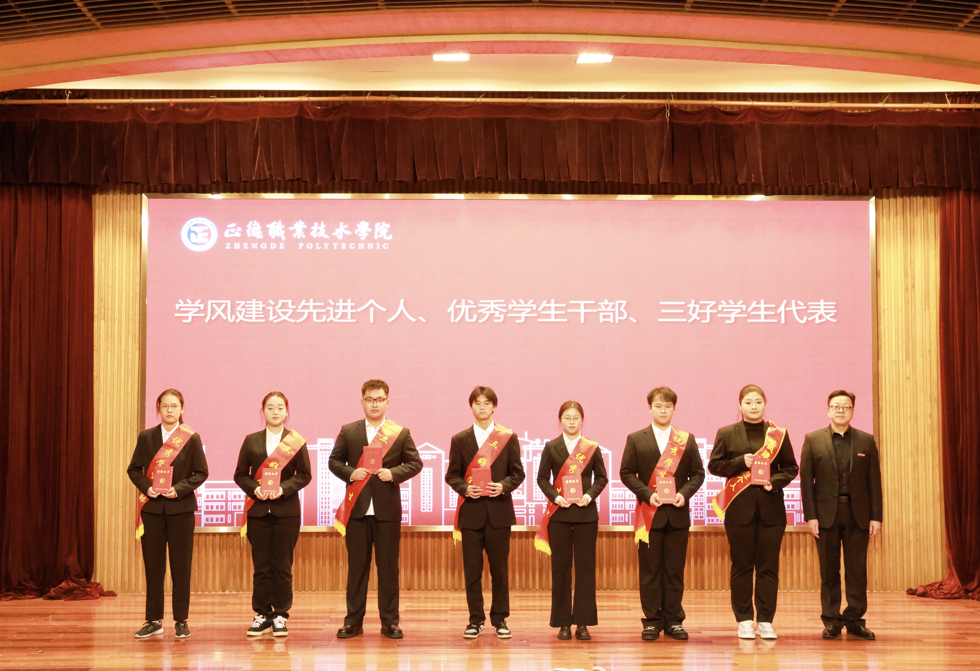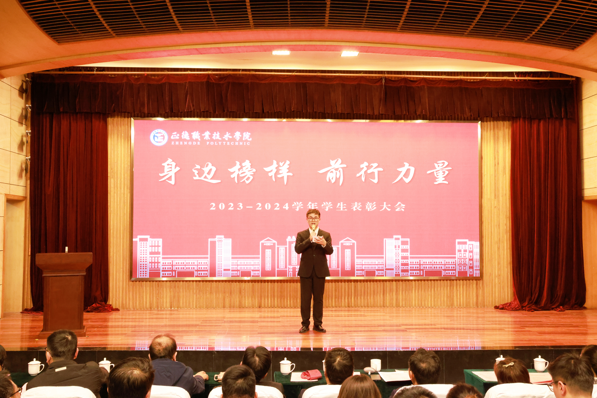 本次学生表彰大会旨在通过选树先进典型、表彰奖励先进、强化示范引领,激发全体学生在朋辈的榜样中汲取奋进力量,立志勇毅前行。让优秀学生的先进事迹和成功经验引领全院学生共同成长,用智慧和汗水书写无悔青春,以踏实步履铺就时代华章,用拼搏和奋斗诠释正德人精神。