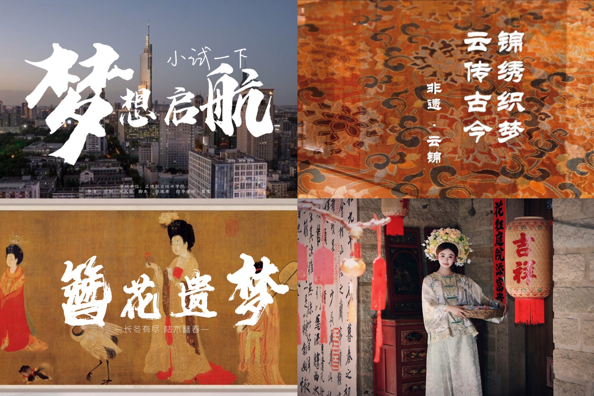 学生作品《锦绣织梦 云传古今》《金陵剪纸》与《簪花遗梦》分别以南京云锦、金陵剪纸、泉州簪花这三种传统技艺为题材,深入挖掘了中华传统文化的精髓,以独特的艺术视角和创新的表现形式,生动展现了中华民族的卓越创造力与深厚智慧。《小试一下 梦想启航》这个作品记录了三位青年微创业活动,展现了当代青年勇于尝试、敢于追梦的精神风貌,看到了当代青年的力量与担当,传递出积极向上的价值观和社会责任感,激励了当代青年和大学生勇敢追求自己的梦想和目标。