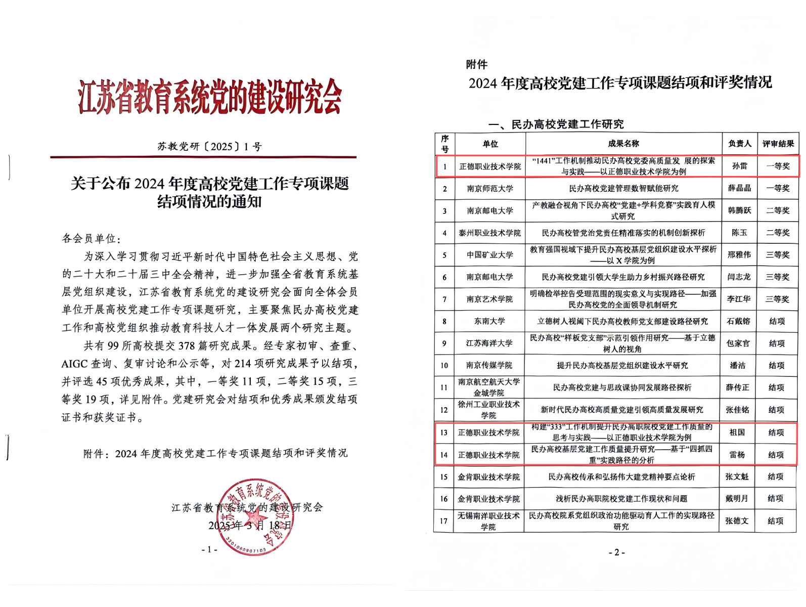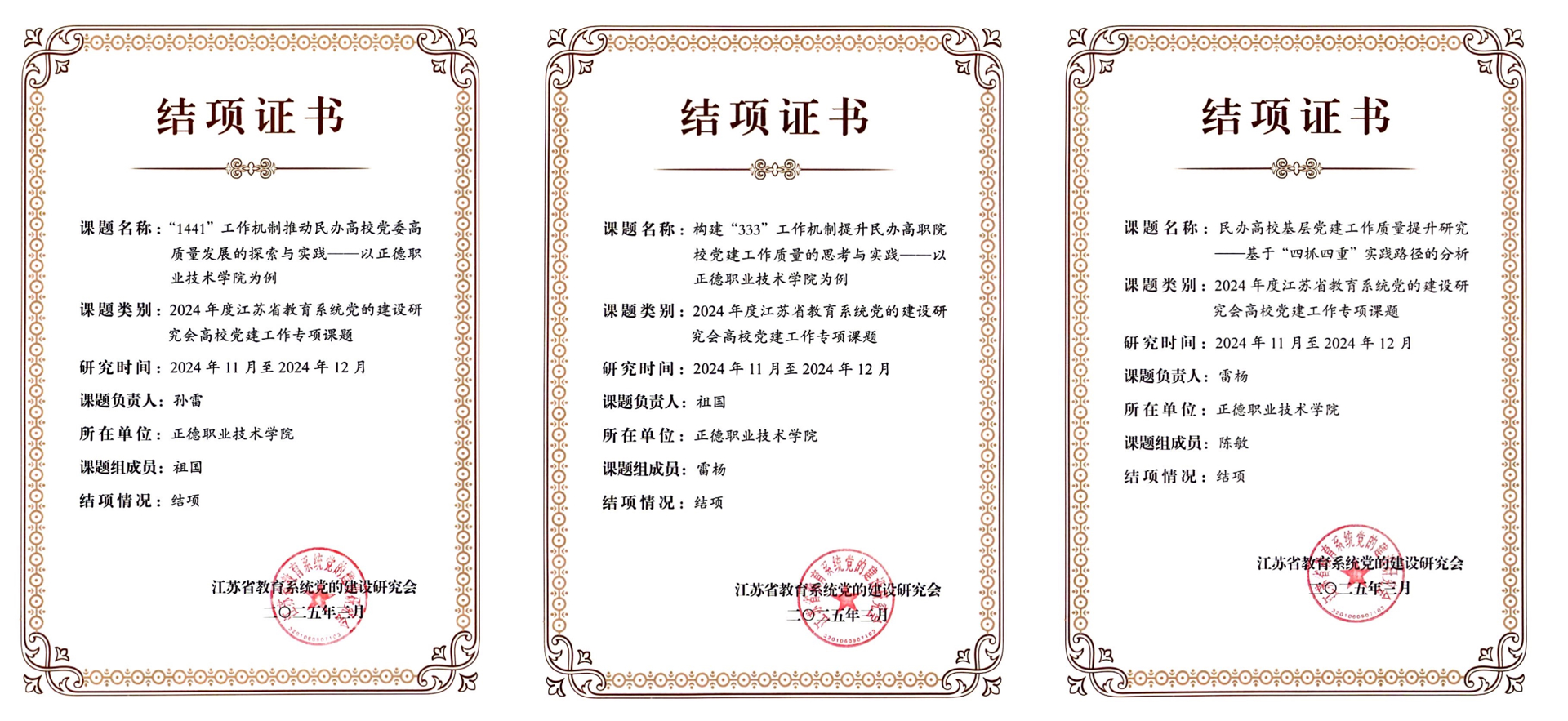 2024年11月,江苏省教育系统党的建设研究会聚焦民办高校党建工作和高校党组织推动教育科技人才一体发展两个研究主题,面向全省高校进行了成果征集。共收到99所高校提交的378篇研究成果,经过评审,最终批准214项研究成果予以结项。另外,在批准结项的成果中,共评选出45项优秀成果,其中一等奖11项、二等奖15项、三等奖19项。户外露出 课题从全省高校提交的参评项目中脱颖而出,喜获一等奖,是户外露出 在党建理论研究与实践创新领域取得的又一重要突破,充分体现出党建工作理论思考与实践操作的有效融合。