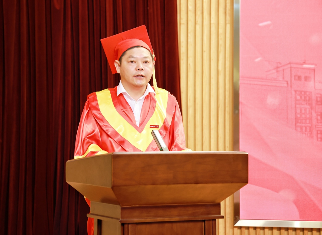 孙永荣代表学院向毕业生们送上诚挚的祝贺和美好的祝福。他指出,三年来同学们在学院接受了知识的洗礼,技能的锻炼和人格的熏陶,用实际行动践行了“敏于行,勤于思”的学风和“孝、宽、诚、责、毅”五字文化。从技能大赛到转本升学,从校企实习到技能报国,每一位同学都是学院的骄傲和宝贵精神财富。临别之际,他深情寄语毕业生:一是希望同学们坚守理想,厚植家国情怀。以理想为灯塔照亮人生的方向,将家国情怀作为逐梦路上最深厚的底气,去追逐和实现心中的梦。二是希望同学们脚踏实地,淬炼匠心品质。未来把每一次实践当作打磨技艺的机会,把每一项任务视为提升能力的舞台,以匠心在专业领域深耕细作。三是希望同学们勤学善思,勇立时代潮头。保持“空杯心态”,在学习中开阔视野,在实践中增长才干,主动拥抱新技术、新产业、新业态。