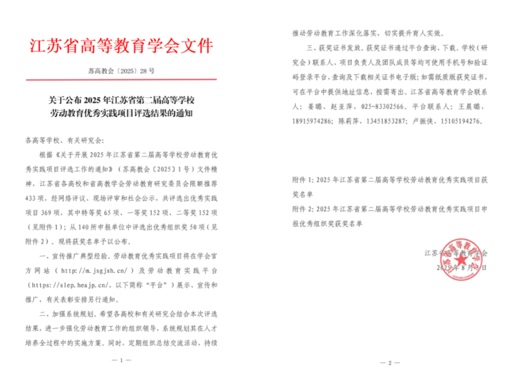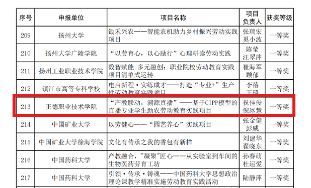 近日,江苏省高等教育学会公布了2025年江苏省第二届高等学校劳动教育优秀实践项目评选结果,户外露出 推荐选送的《“产教联动,溯源直播”——基于CIPP模型的直播专业学生助农劳动教育实践项目》荣获一等奖。
