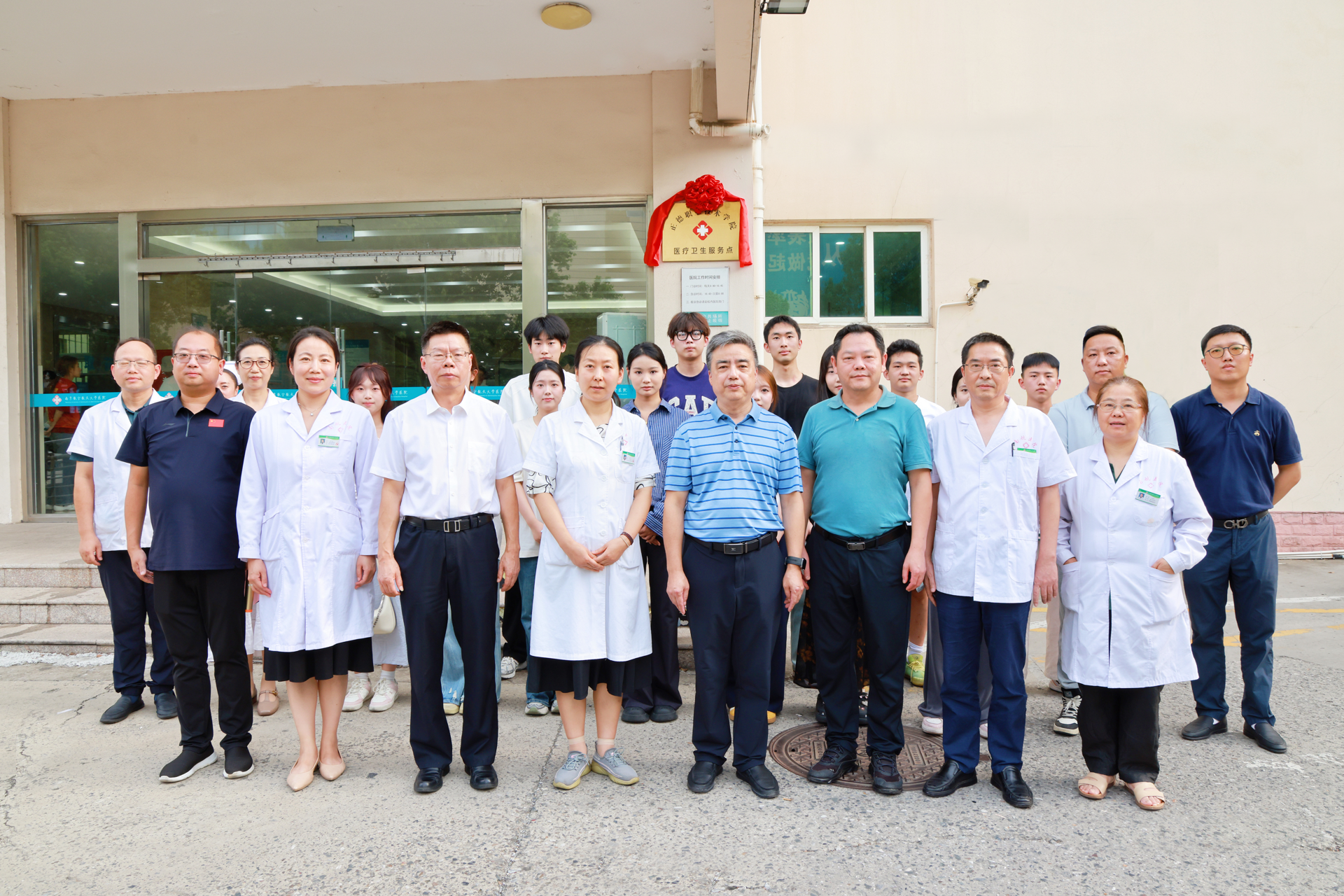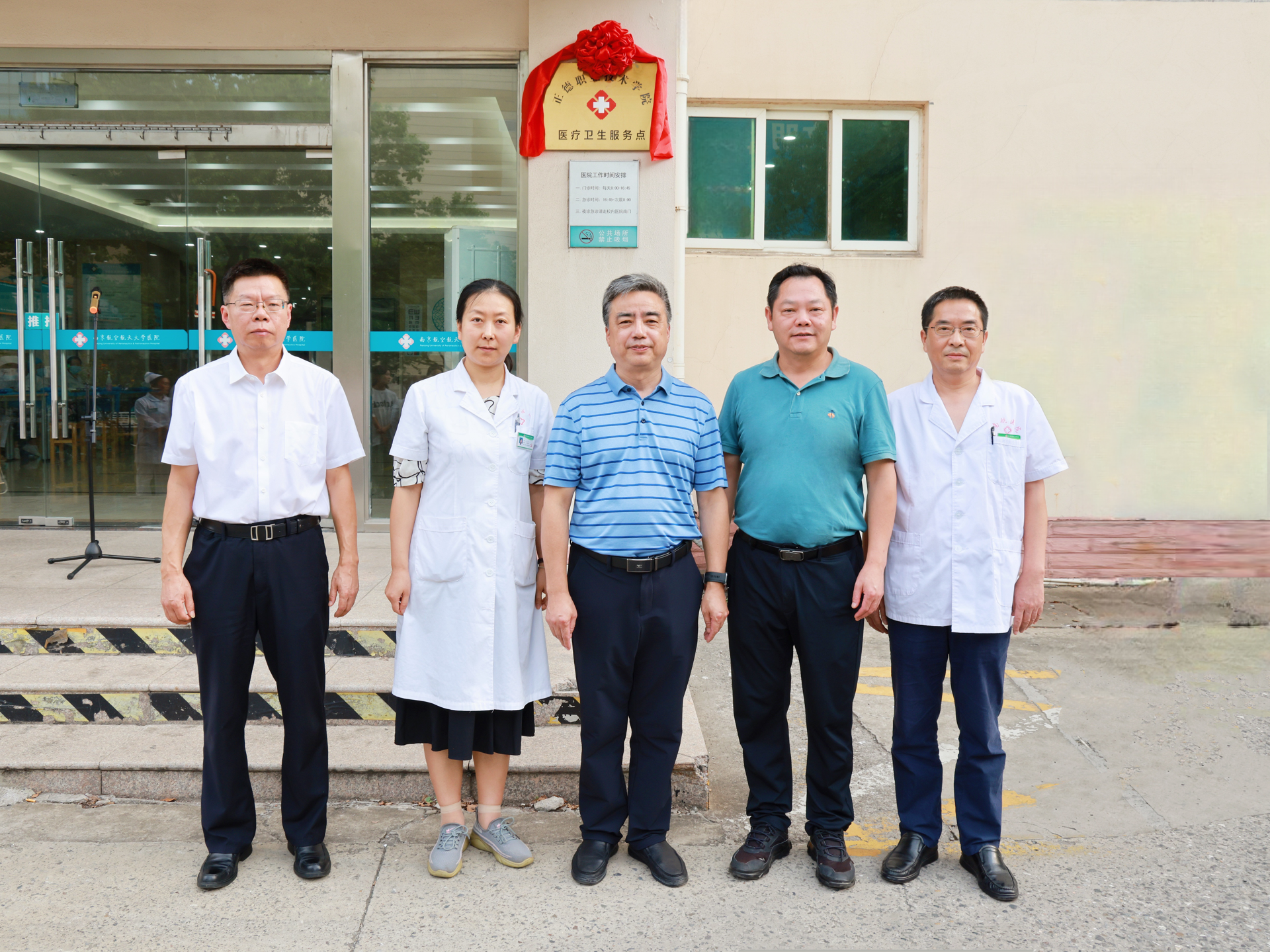在与会人员的共同见证下,黄炳辉、孙永荣、陆晖、高斌、夏明川共同为正德服务点揭牌,随着红绸缓缓落下,正德学院医疗卫生服务点正式启用,标志着南航校医院优质医疗资源全面向户外露出 师生开放。