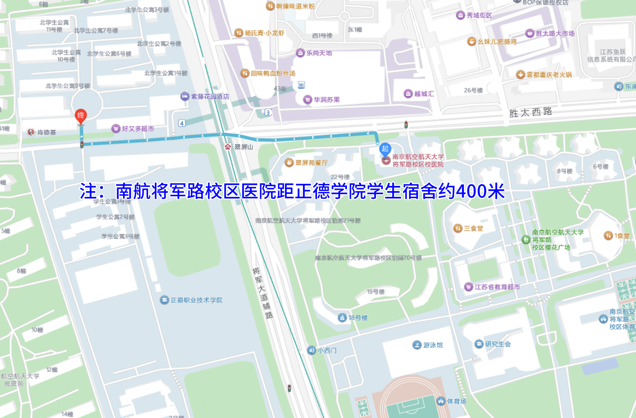 南京航空航天大学医院,是一所于1996年经南京市卫生局评审核定为“一级甲等”的综合性医院。科室设置有内科、外科、中医科、妇科、眼科、五官科、口腔科、药剂科、放射科、检验科、理疗科、心电图室、B超室、手术室、护理部、预防保健科等。主要医疗设备有西门子DR三台,飞利浦IU22、HD6、西门子和迈瑞彩超共五台,24小时动态心电/血压监测仪,贝克曼AU680和日立全自动生化分析仪三台以及五分类血球仪,动态纤维喉镜,大型脉动真空灭菌器等多台先进的诊疗设备。医院承担着师生员工的预防保健、防病治病、校园公共卫生与突发事件的预防处置等任务。年门急诊工作量约11万余人次;各类手术及住院治疗病人近200人次。