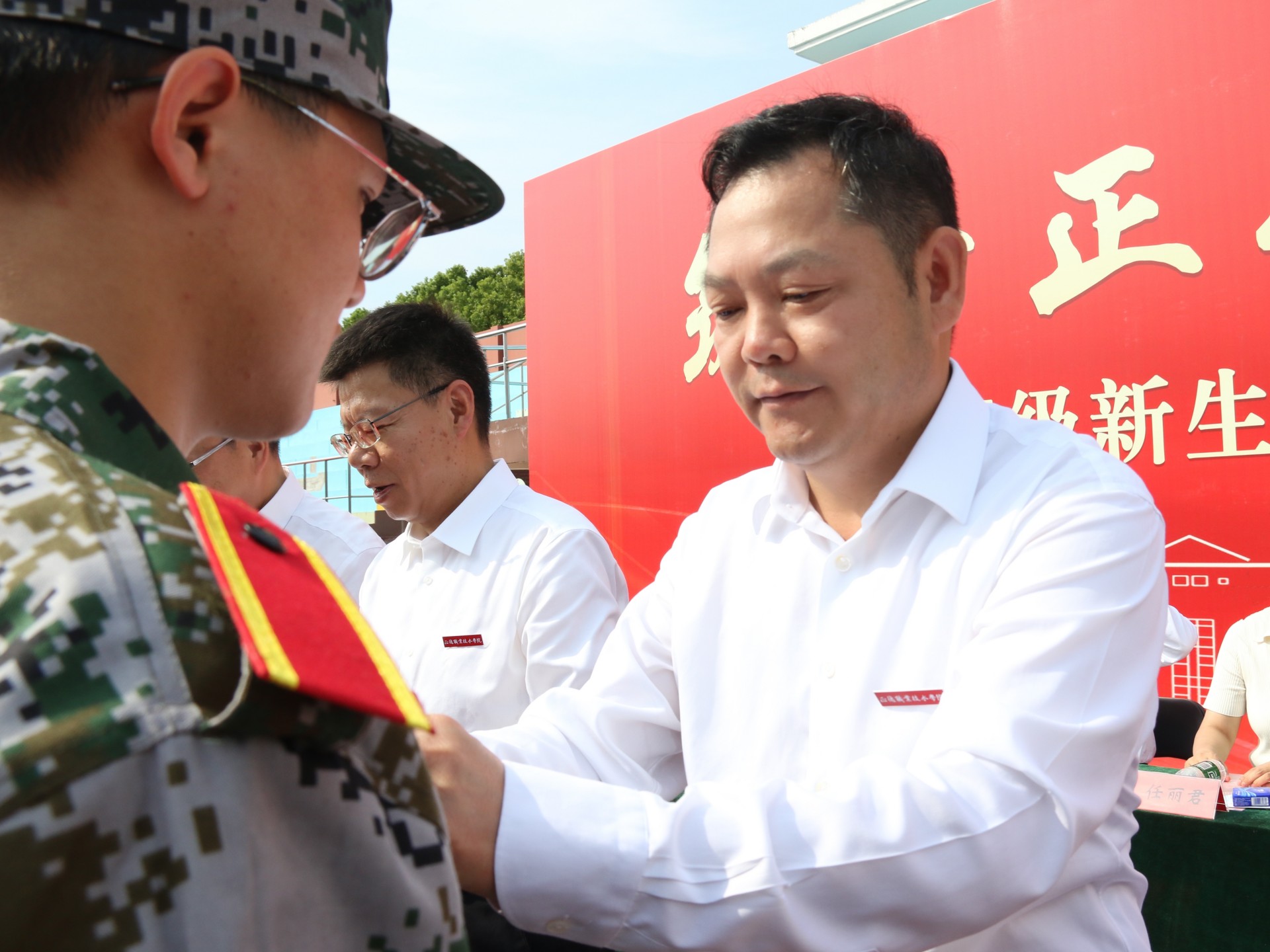 大会现场,院党委书记、政府督导专员孙雷为军训团授旗,标志着2025级新生军训正式启动。承训部队代表刁嵘峥随即对参训新生提出纪律要求与训练期望,鼓励新生以昂扬姿态投入军训。