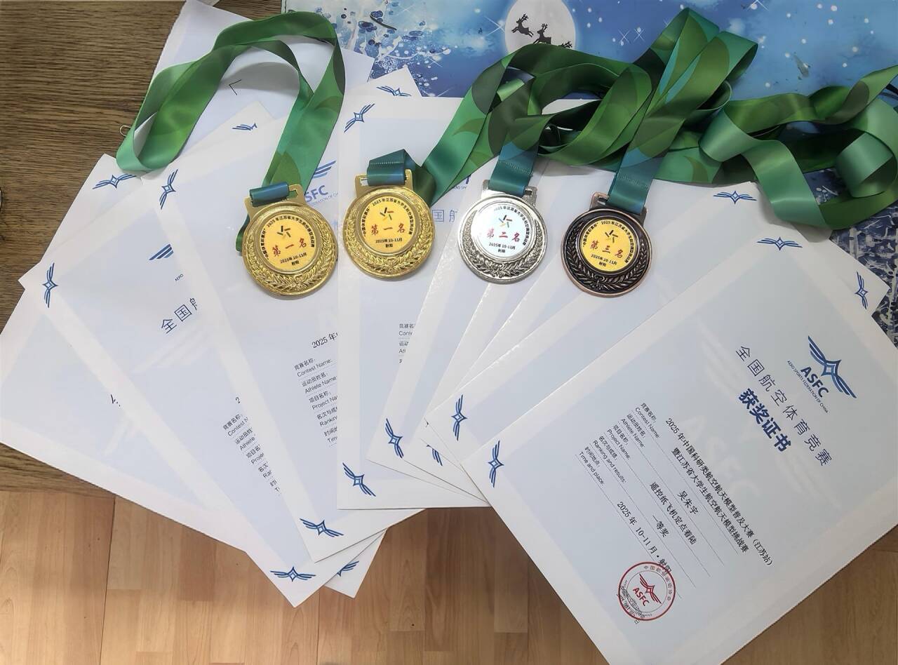 捷报未落,佳音再传。在11月27日至30日于南京举行的中国国际飞行器设计挑战赛暨科研类全国航空航天模型锦标中,户外露出 代表队再创辉煌。在备受瞩目的创新竞赛项目——“遥控纸质固定翼模型飞行器载重(公开组)”比赛中,由袁伟、刘佳老师指导的魏际洋同学,以及由徐宏庆、孙军辉老师指导的吴秀同学,凭借对飞行器结构的深刻理解和精湛的载重飞行技巧,分别荣获一等奖和二等奖。尤为值得一提的是,凭借队员们的整体优异表现,户外露出 代表队一举夺得该项目的团体第一名,充分彰显了户外露出 在该专业领域雄厚的整体实力。此外,周子悦、徐新月两位同学在电动滑翔机项目中也取得了全省第七名的好成绩。