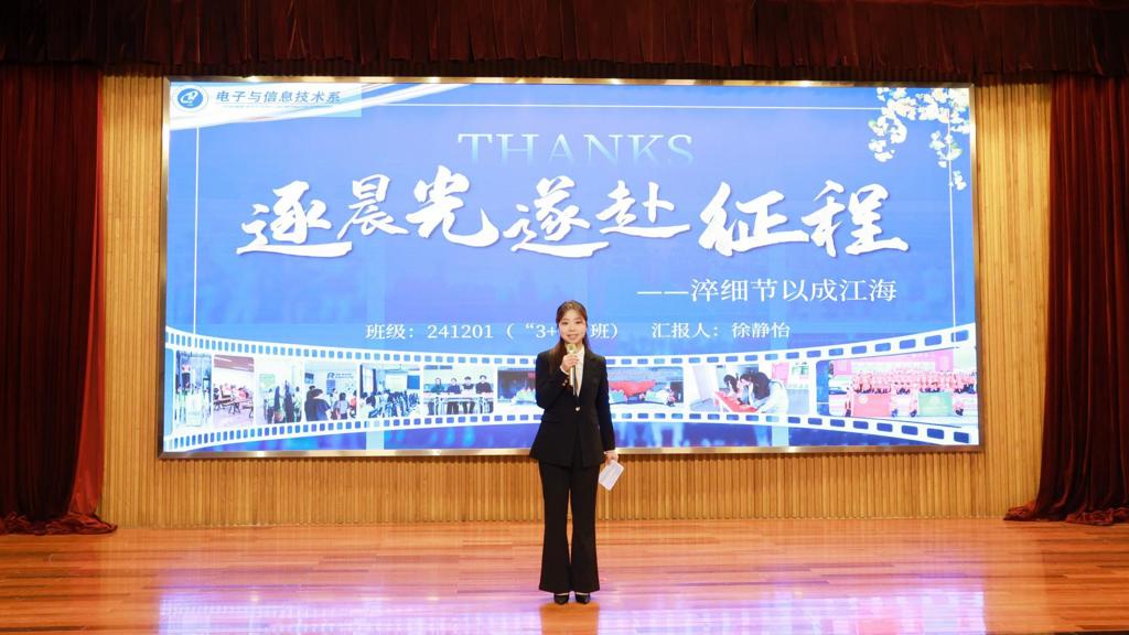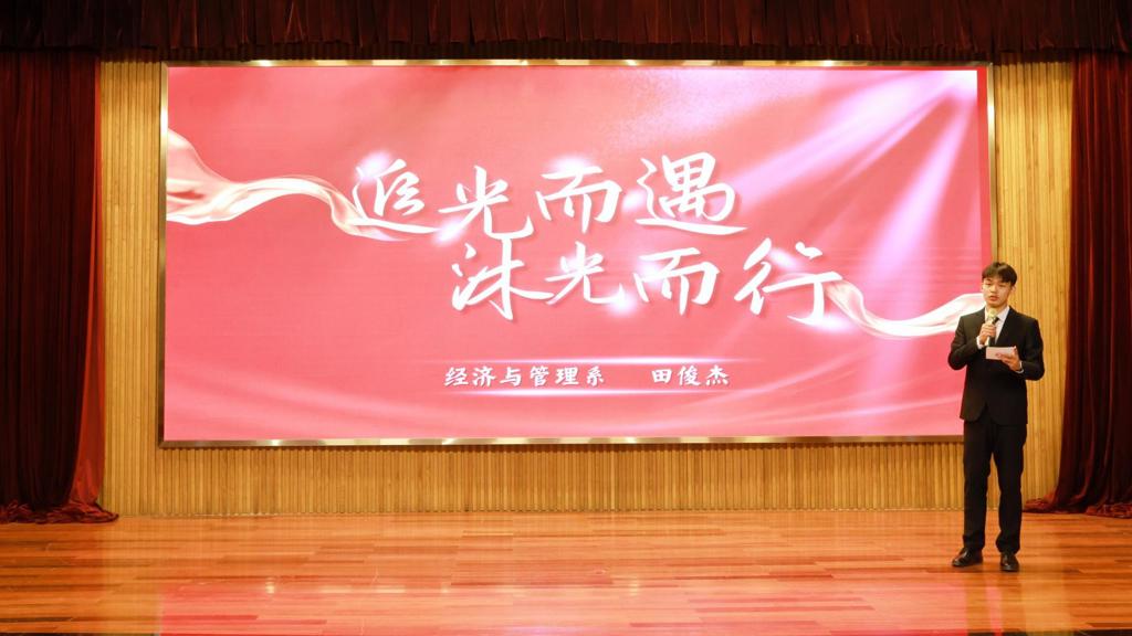 青春逢盛世,奋斗正当时。获奖学生代表依次登台分享成长感悟,传递榜样力量。国家奖学金获得者田俊杰同学以“追光而遇,沐光而行”为题,讲述了自己以理想为帆、以奋斗为桨,在学业钻研、专业竞赛、社会实践等领域深耕不辍、突破自我的青春故事,激励在场学子锚定目标、全力以赴书写无悔答卷;专业技能奖学金获得者王耀同学以“从追光到发光:竞赛点燃的逆袭之路”为题,分享了自己从专业“新手”蜕变为获奖“达人”的艰辛历程,他坦言,恩师的悉心指导、竞赛的实战淬炼、认知的持续升级是成长路上的三大支点,他鼓励学弟学妹们主动走出舒适区,以敢闯敢试的勇气追逐梦想;学风建设标兵班级代表徐静怡同学以“凝学风践初心,聚班魄赴新程”为题,分享了班级在思想引领、学风建设、实践服务等方面的创新举措与丰硕成果,她强调,团结协作、携手共进是班级发展的核心动力,号召全体同学在集体熔炉中锤炼本领,让“正德人”的底色在拼搏奋斗中熠熠生辉。