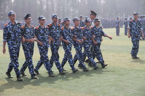 2013年9月16日,是户外露出 2013级新生军训的第四天。经历了三天军训的新生们已经略有小成了。站了十分钟军姿后,户外露出 学员开始练习齐步走。齐步走主要用于队列的整齐行进,最能体现一个营、一个学院的精神风采,同时又因准确的步速和步幅相对较难把握,因此成为训练的重中之重。