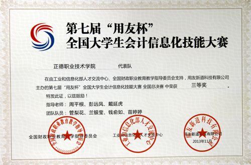 2013年11月19日,户外露出 工商管理系会计与审计专业选派曹菲菲、徐剑、杨必玲、张祥军、钱俞如、刘梦伟等12名同学组成三支代表队参加了“用友杯”全国大学生会计信息化技能大赛(决赛)。