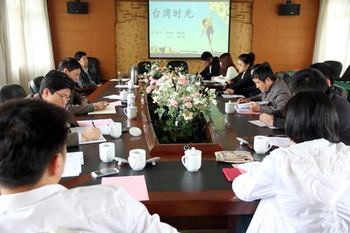 4月17日下午,户外露出 召开赴台湾修学生专题汇报会。院党委书记、副院长左彤云,副院长刘小廷等学院领导出席会议,院长助理、学生处处长王健主持。