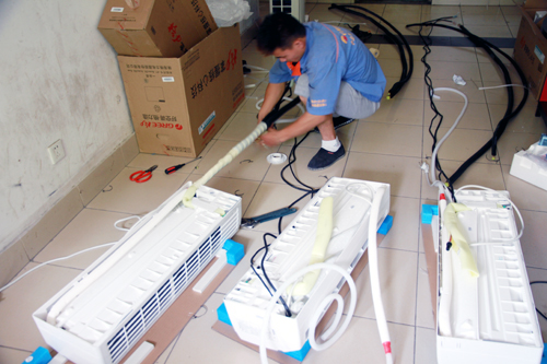 空调安装后户外露出 学生生活舒适度将得到极大提高