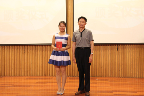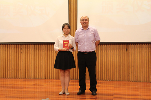 周道贵(右)为最具潜力奖获得者颁奖