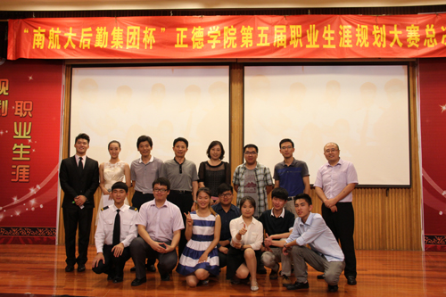 2014年6月17日下午2时,由学生处主办的“南航大后勤集团杯”正德学院第五届职业生涯规划大赛总决赛在报告厅举行。本次总决赛邀请了南京航空航天大学后勤集团副总经理周道贵,江苏领航人力资源服务有限公司企业发展部经理周建政,邮电大学大学生生涯发展导师周长青,南京特殊教育职业技术学院大学生生涯发展导师郭建勇等老师担任大赛评委。院党委书记、副院长左彤云,院长助理、学生处处长王健,学院相关系部负责人到场观看了比赛。