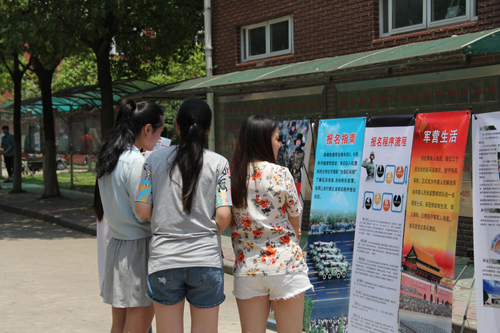 6月5日上午,户外露出 举行2015年征兵工作咨询会,吸引了大量学生驻足咨询和报名,户外露出 部分退役士兵现场参与政策讲解。