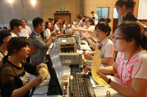 繁忙而井然有序的缴费点